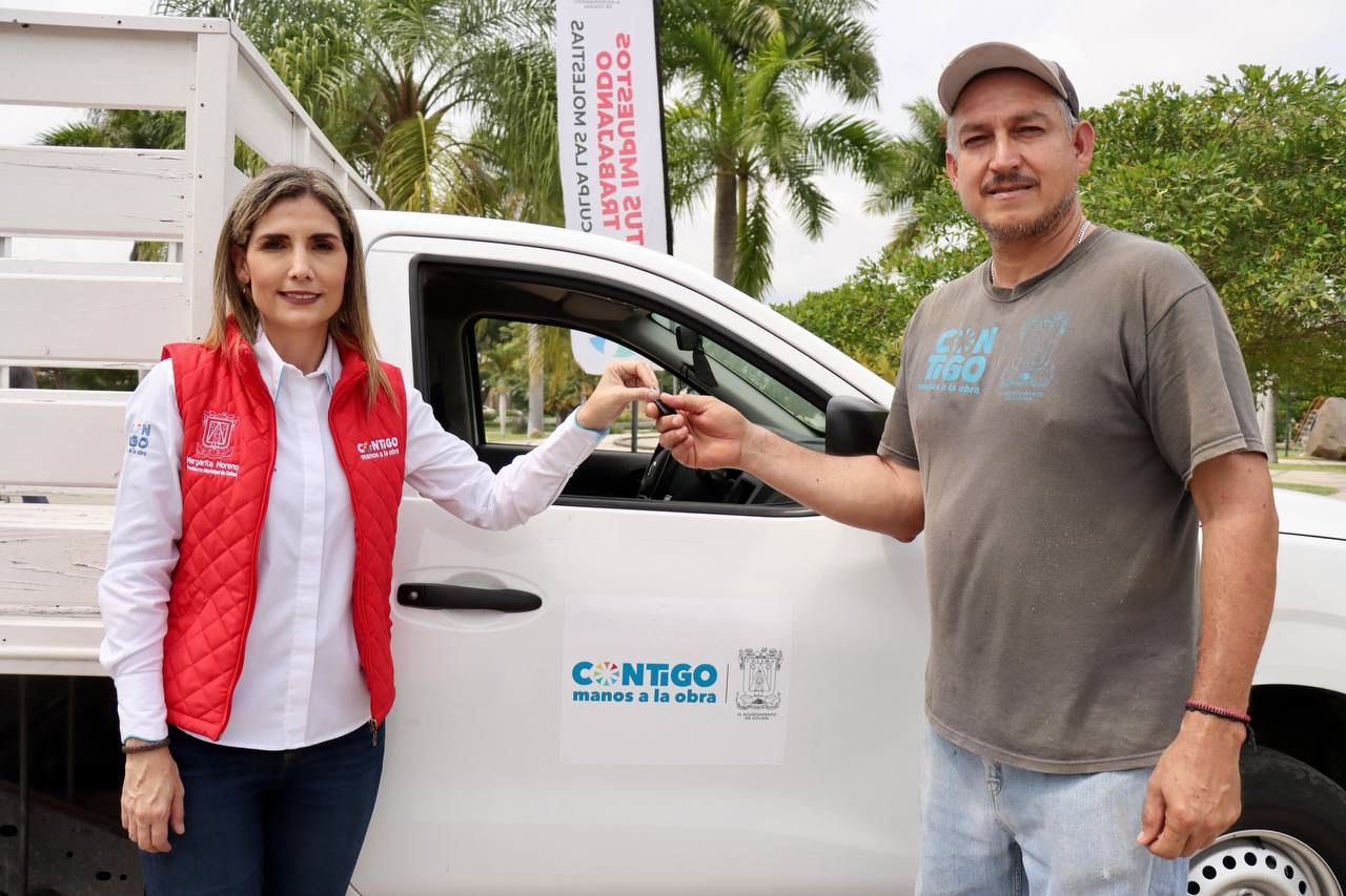 La presidenta municipal de Colima, Margarita Moreno, hizo entrega de dos camionetas nuevas tipo pick – up para reforzar el trabajo del equipo del área de parques y jardines de la dirección general de Servicios Públicos, como es el compromiso que se ha definido en el plan estratégico “El jardín que mereces”.