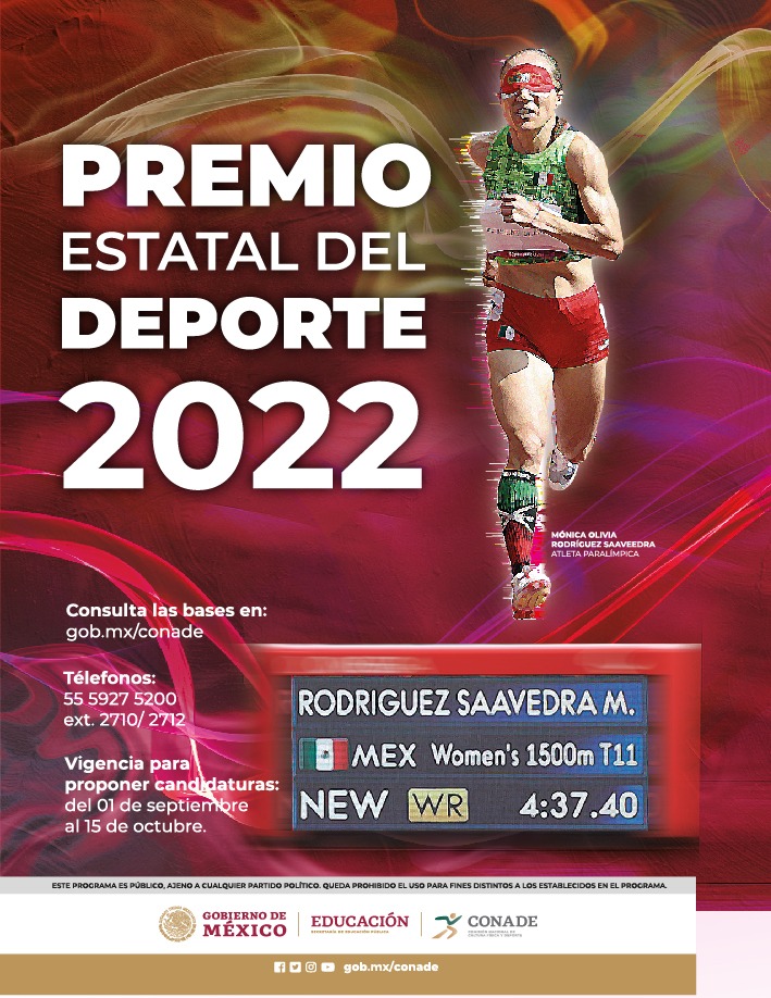 La reunión de elección del Premio Estatal del Deporte se realizará en el Incode el 19 de octubre del 2022 a las 12 horas; los requisitos que deberá cubrir cada candidato(a) serán, presentar la carta propuesta emitida en el presente año, acreditar la nacionalidad mediante copia certificada, currículum deportivo con documentos que lo avalen, identificación oficial, CURP y llenar la hoja de registro con fotografía.