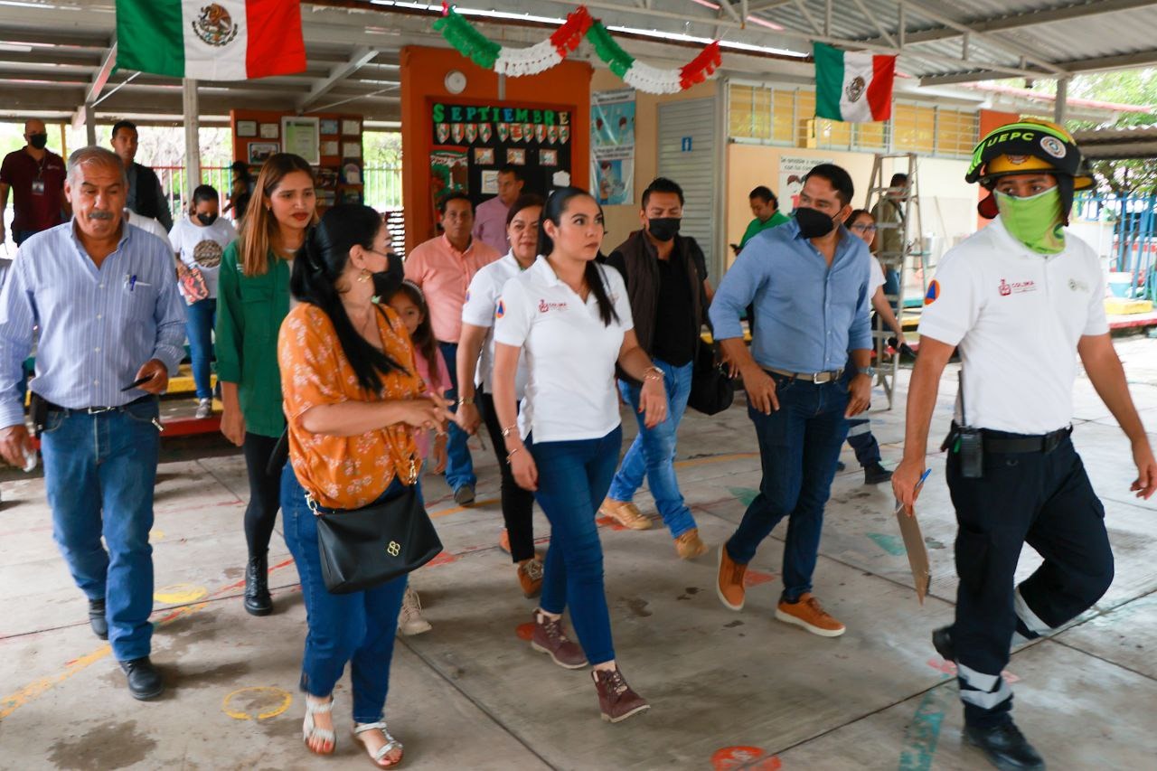 * La mandataria constató daños en jardín de niños en Coquimatlán, secundaria en Madrid, Cofradía de Juárez e Ixtlahuacán; reitera que la prioridad es salvaguardar la vida e integridad de la población colimense