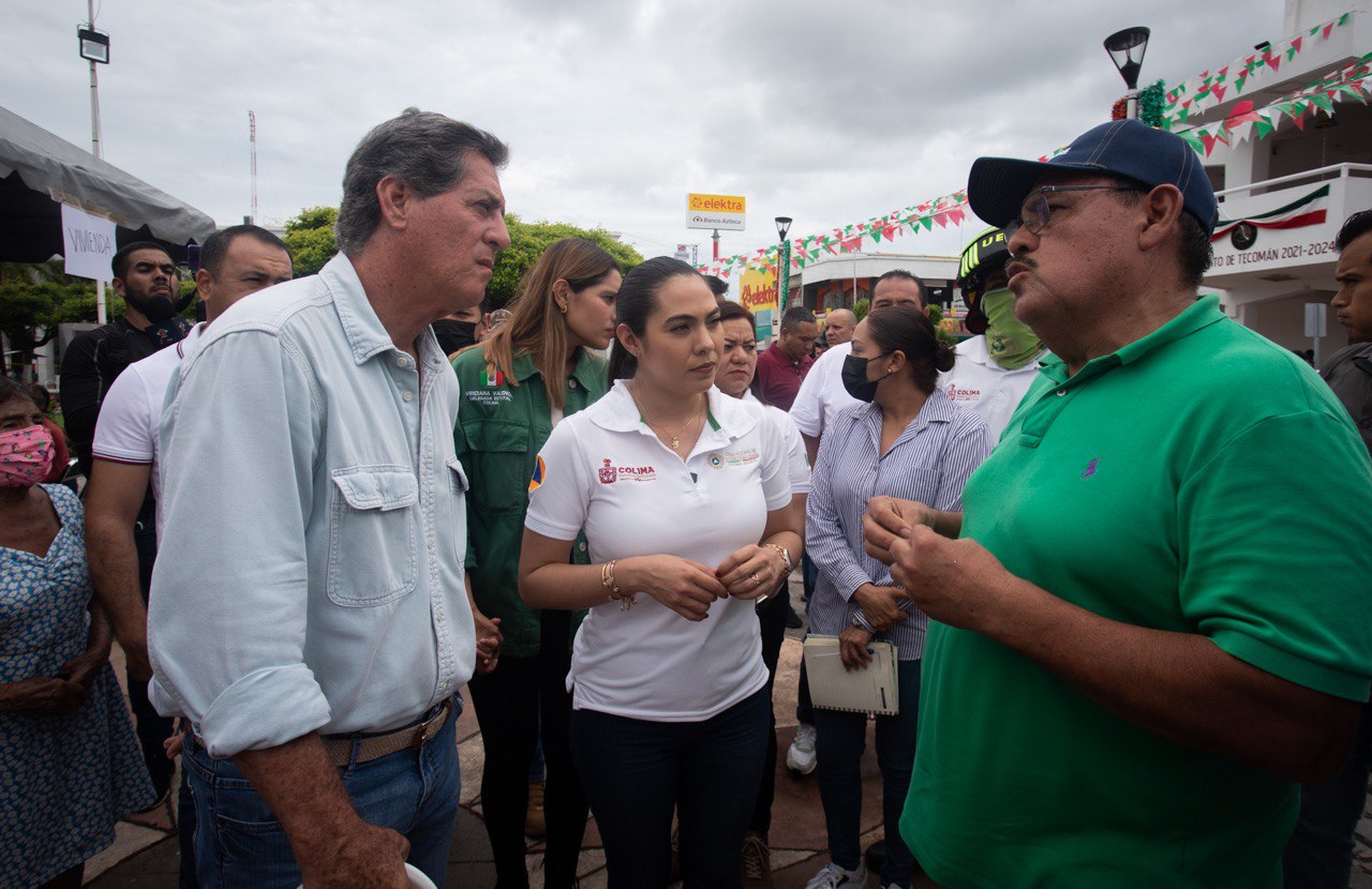 Indira acudió al jardín principal de Tecomán, donde se instalaron módulos de atención a quienes sufrieron daños en sus viviendas o comercios, así como en colonias populares, comunidades rurales y en zona de playa. Ahí se estableció un centro de control de la Unidad Estatal de Protección Civil (UEPC). El edificio del Ayuntamiento de Tecomán se encuentra acordonado y no se permite el ingreso por las afectaciones tras el movimiento telúrico. También se trasladó a la comunidad de Cofradía de Juárez.