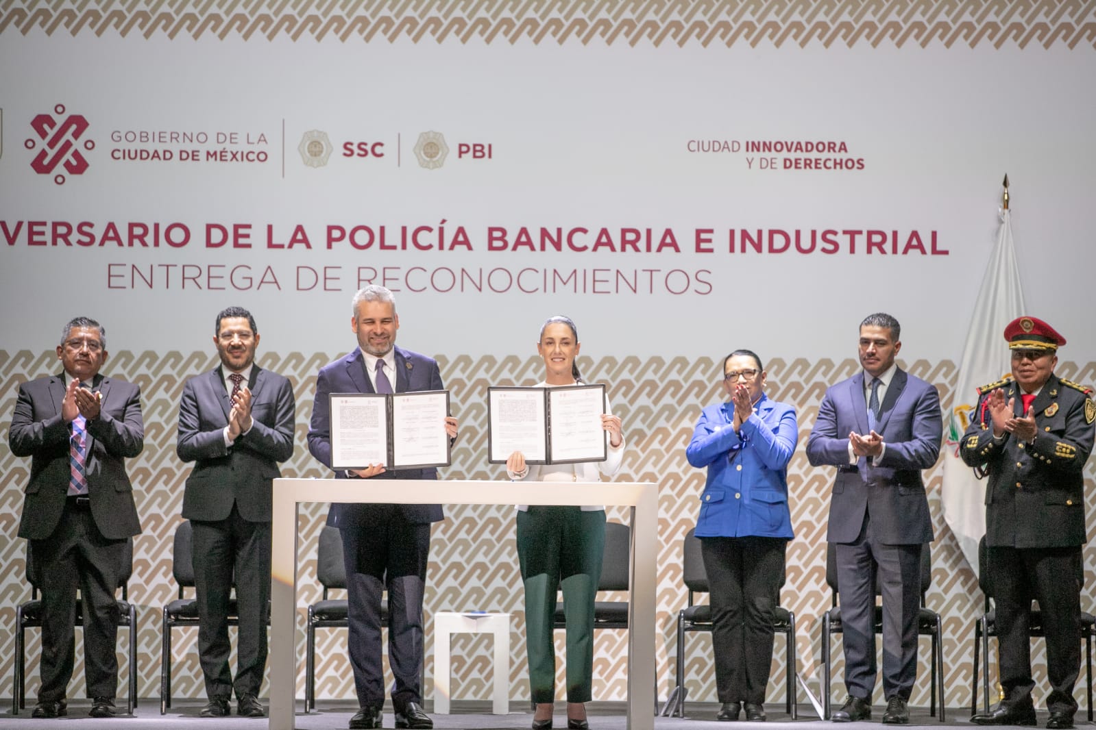 “Fíjense que importante es el trabajo que desempeña la Policía Bancaria Industrial, que hoy firmamos un convenio con Michoacán porque el gobernador quiere que sea la Policía Bancaria Industrial quien capacite a la Policía Auxiliar de Michoacán, esa es la labor que ustedes desempeñan, son ejemplo, no solamente para la ciudad sino para todo el país, por eso hoy quiero agradecerles la labor que desempeñan todos los días”, destacó la Jefa de Gobierno, Claudia Sheinbaum Pardo.