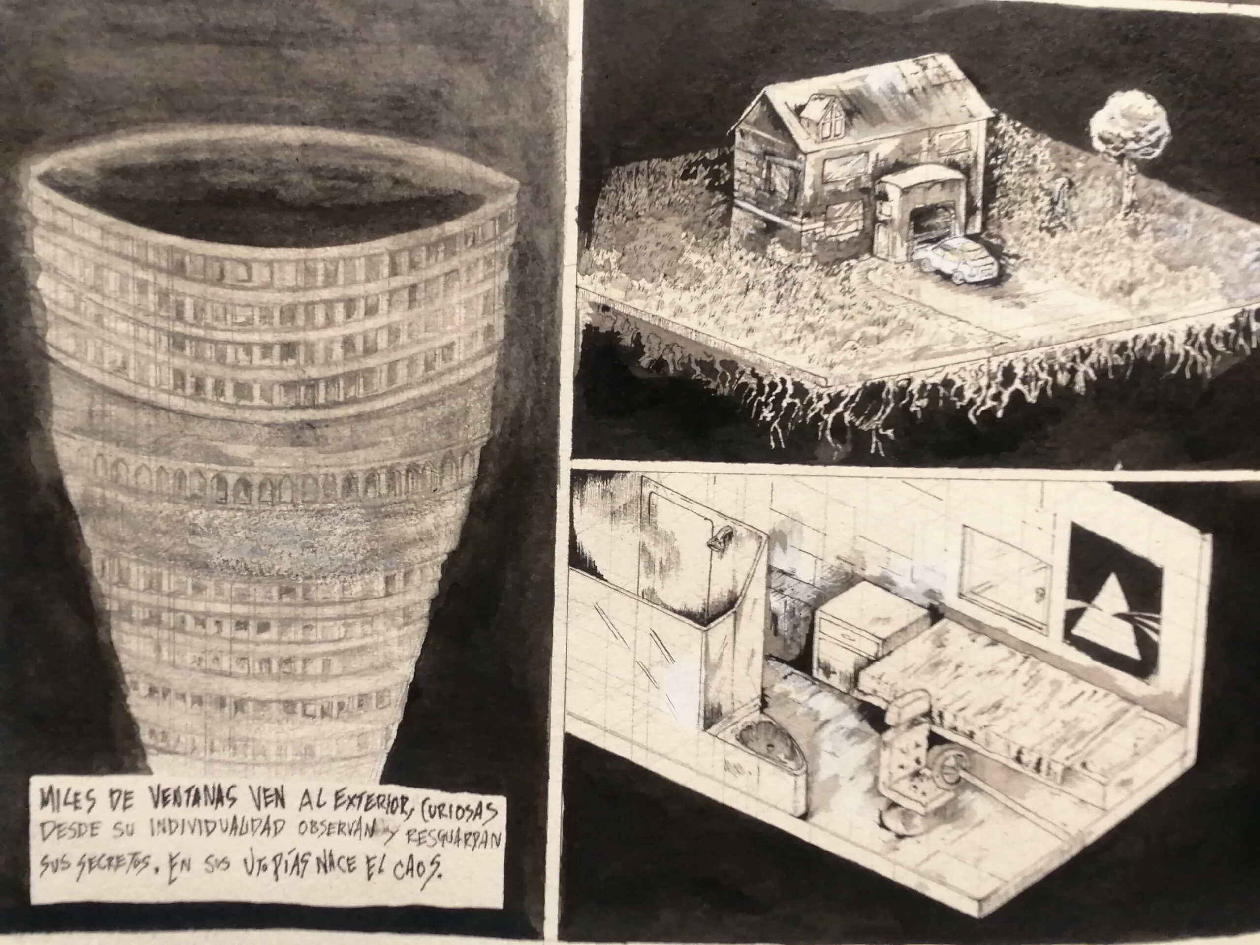 “Tollocan: Atlas de una ciudad Ficción”, es un esfuerzo por crear una mitopoeia (creación de una mitología propia), que a partir de visitas a sitios urbanos y periféricos, dice Crenier, “pueda describir una problemática histórica, que no ha de ser la mímesis de una línea temporal, sino una excavación hacia los escombros del pasado y el presente, donde los sedimentos surgen en nuevos espacios geográficos para encontrarse en un caos cultural e identitario”.