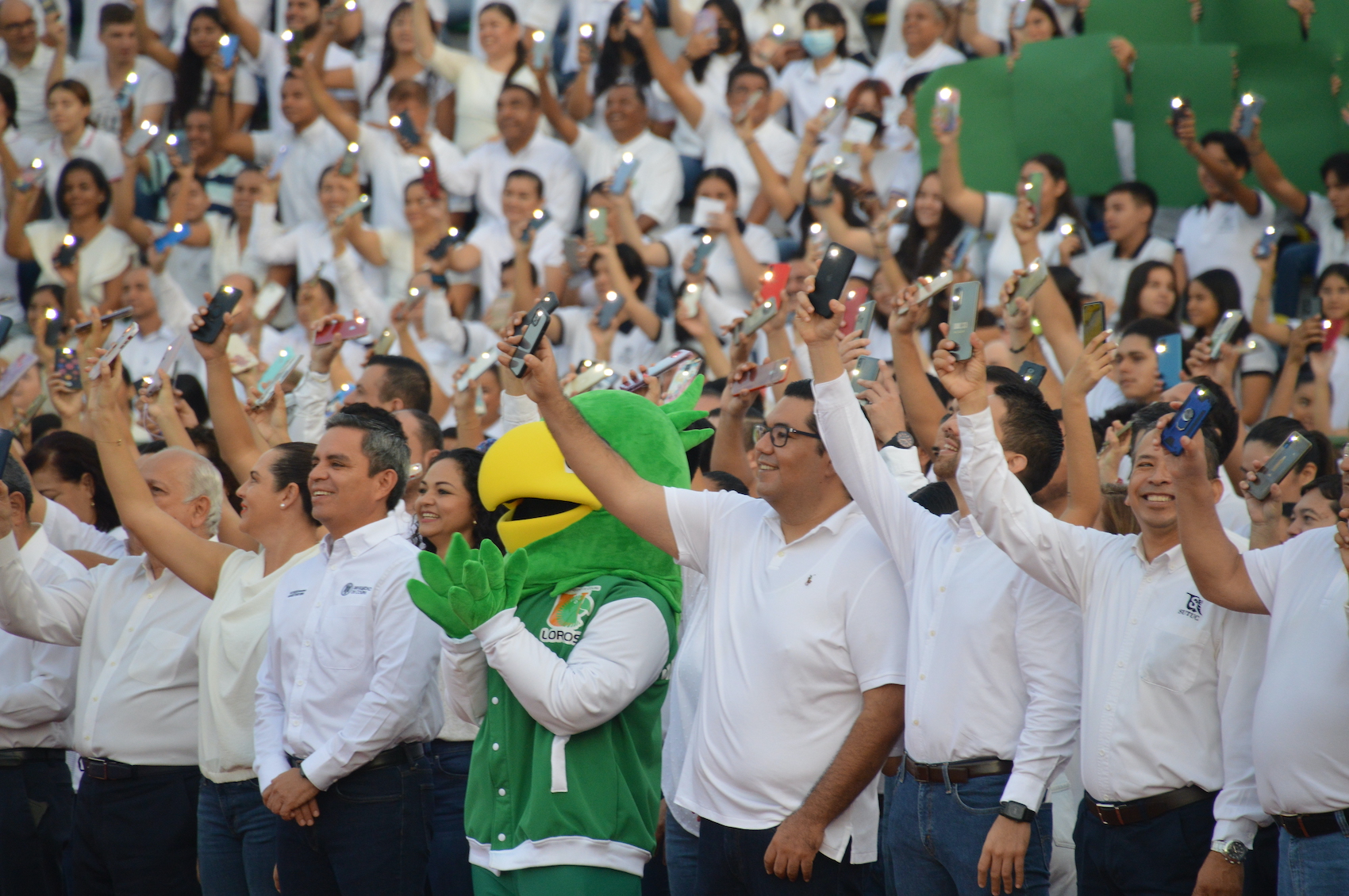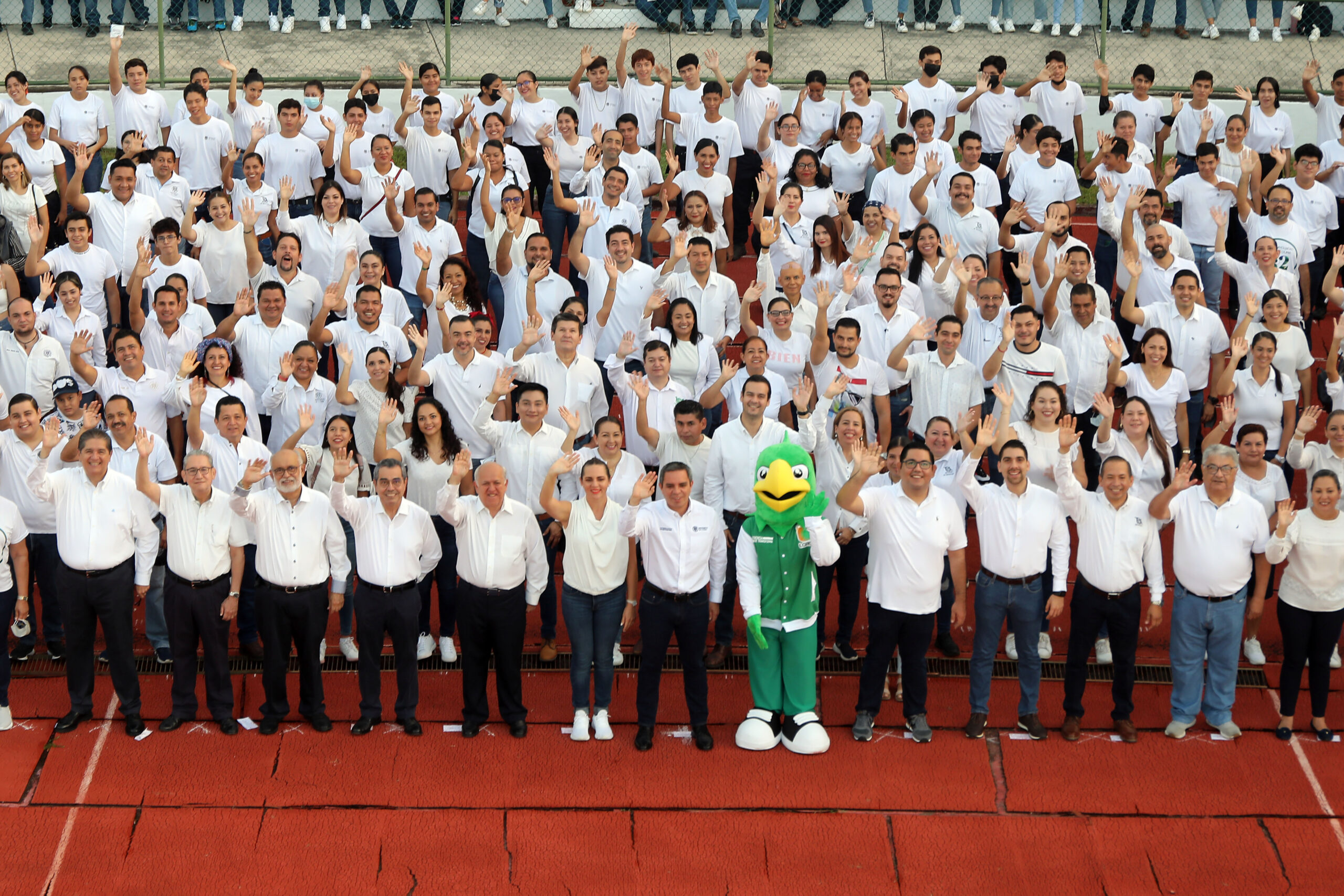 Este miércoles por la mañana, en un ambiente de celebración y fiesta, alrededor de 5 mil integrantes de la comunidad universitaria, entre estudiantes, docentes, investigadores y trabajadores, participaron en la toma de una fotografía monumental, en el Estadio Olímpico Universitario, para celebrar los 82 años de vida de la Universidad de Colima.