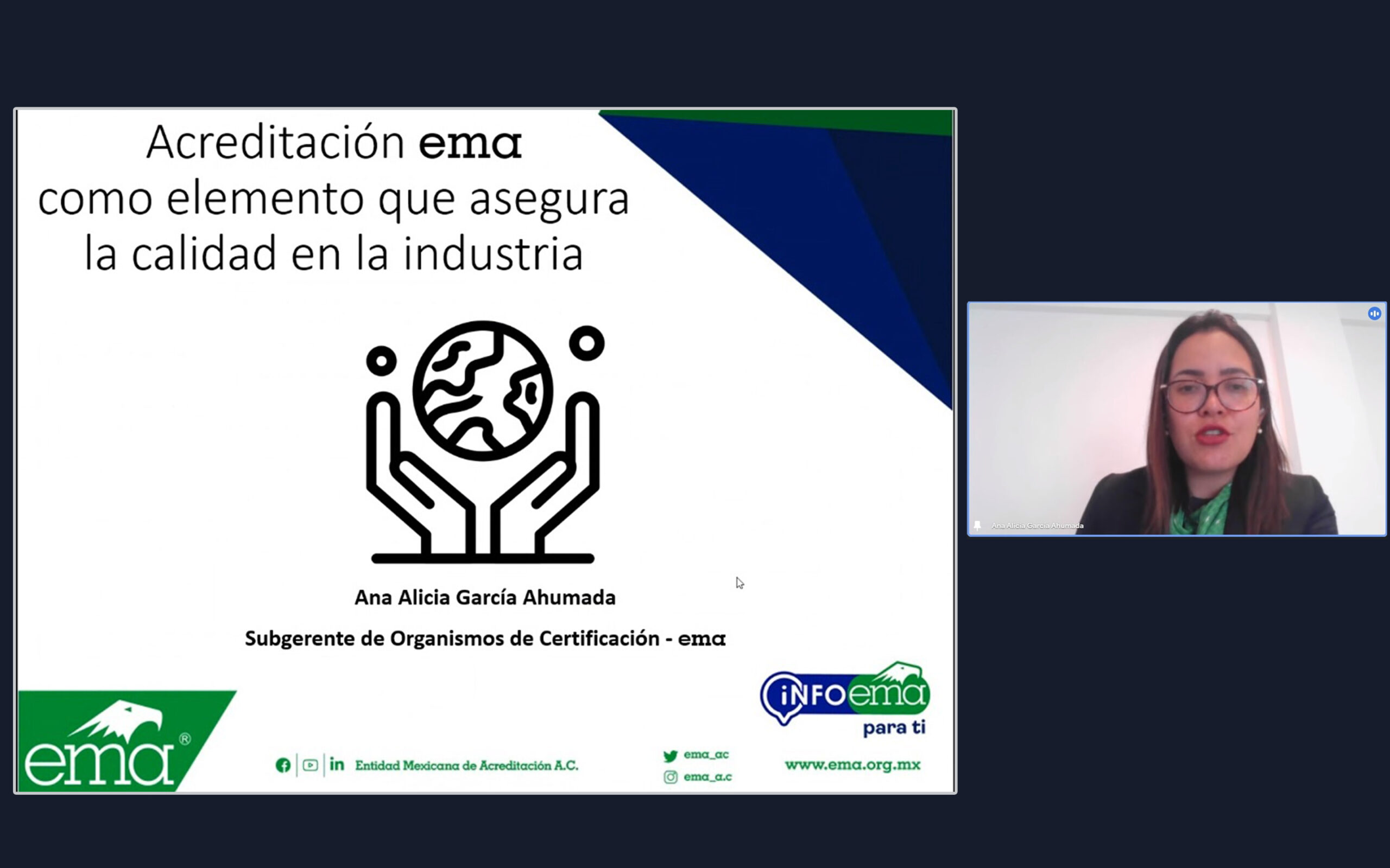 En otra charla, Ana Alicia Ahumada, de la Entidad Mexicana de Acreditación A. C., abordó el tema de los tipos de acreditaciones que esta asociación privada realiza en laboratorios, organismos de inspección y certificación y en productores de materiales, entre otros. Explicó los esquemas que evalúan así como las normas para asegurar que la atención de proveedores o laboratorios sean seguros y cumplan con los requisitos oficiales.