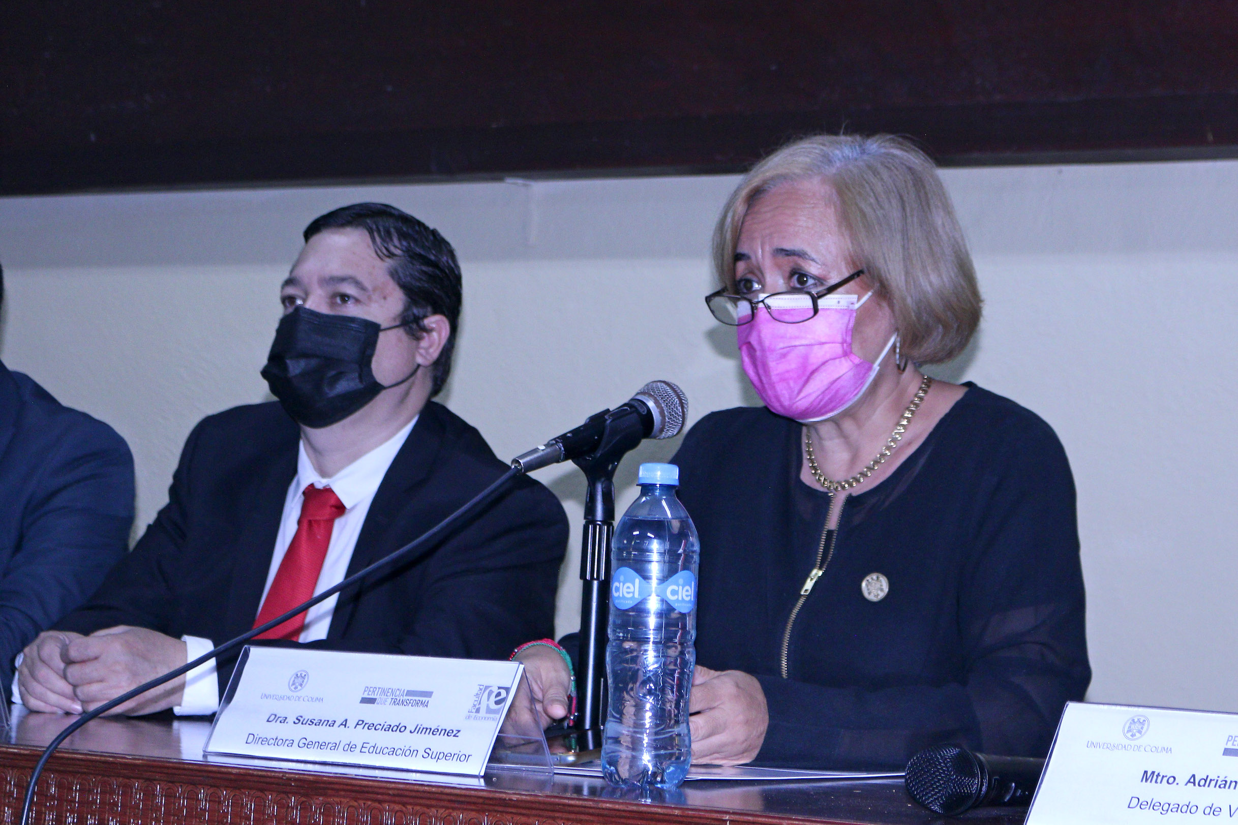 Este evento, realizado en el Auditorio de Humanidades del campus Villa de Álvarez, estuvo presidido por Susana Aurelia Preciado, directora general de Educación Superior, en representación del rector Christian Jorge Torre -Ortiz; Adrián López Virgen, delegado de este campus; José Manuel Orozco, director del plantel; Omar Brizuela Padilla, director de Educación Continua; Liz Murillo Zamora, directora de Educación a Distancia, y Gerardo Alcalá Montes, vicepresidente de la FEUC.