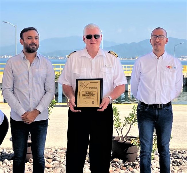 Este martes 11 de octubre de 2022, el Ayuntamiento de Manzanillo y demás autoridades, dieron la bienvenida al crucero Ocean Victory, con quien se hizo un intercambio de placas a través de un evento protocolario.