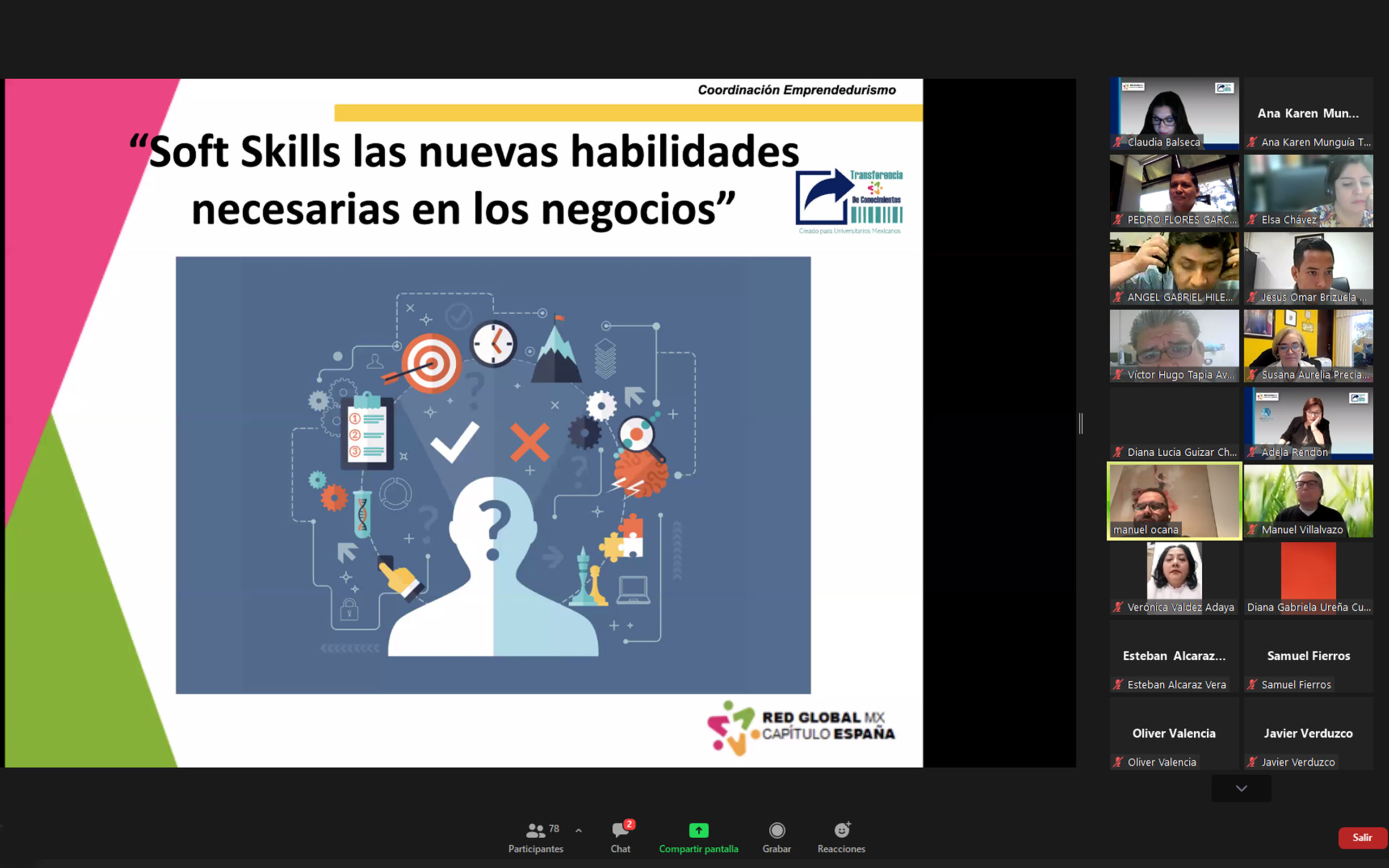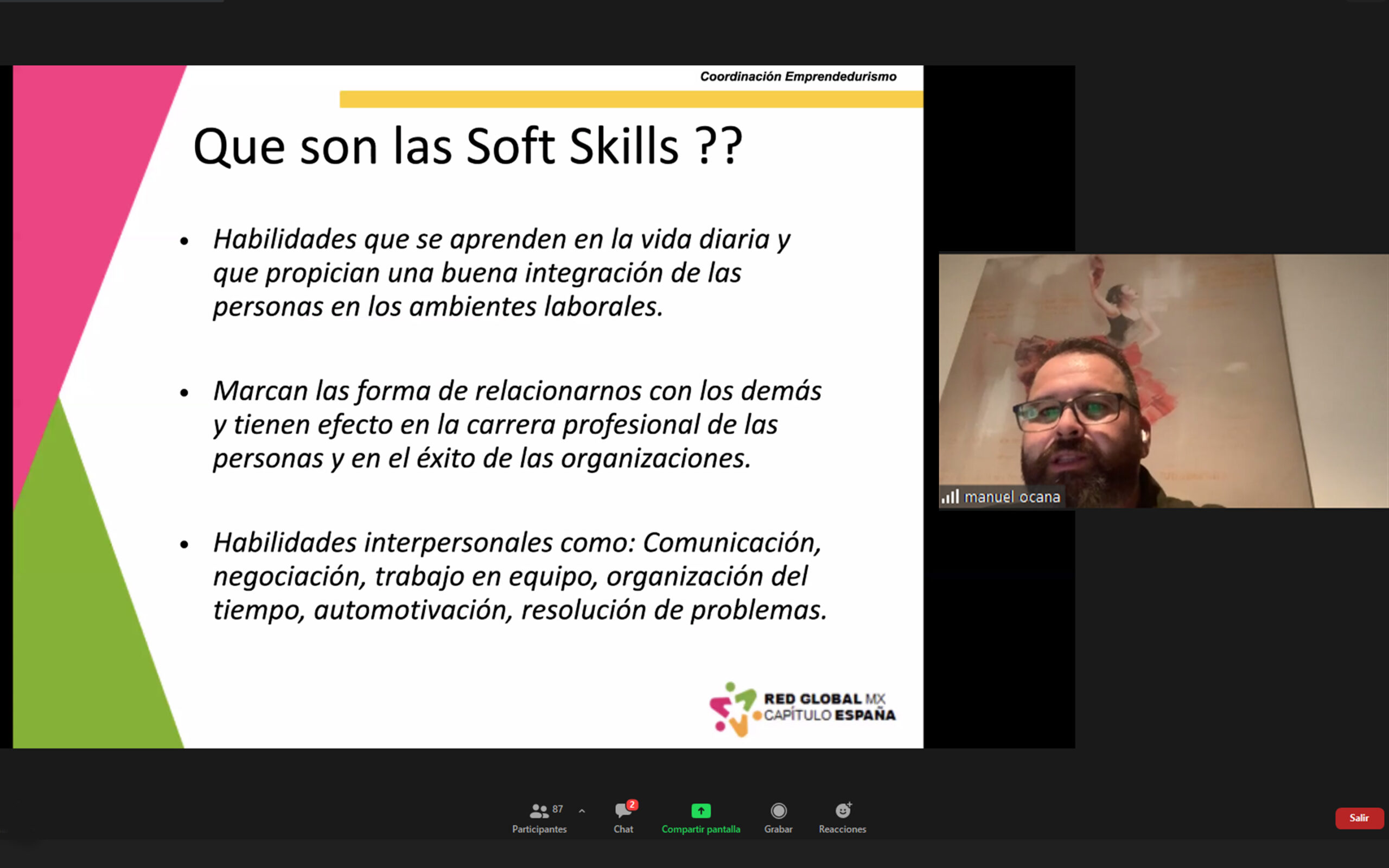 Como parte de la colaboración entre la Universidad de Colima y la Red Global MX Capítulo España, esta semana se impartió la conferencia virtual “La importancia de las Soft Skills y otras habilidades en el mercado laboral”, que estuvo a cargo de Manuel Ocaña, “finisher” del programa Power MBA/España y director de ventas regional de CSB Energy Technology EMEA /España, Italia y África.