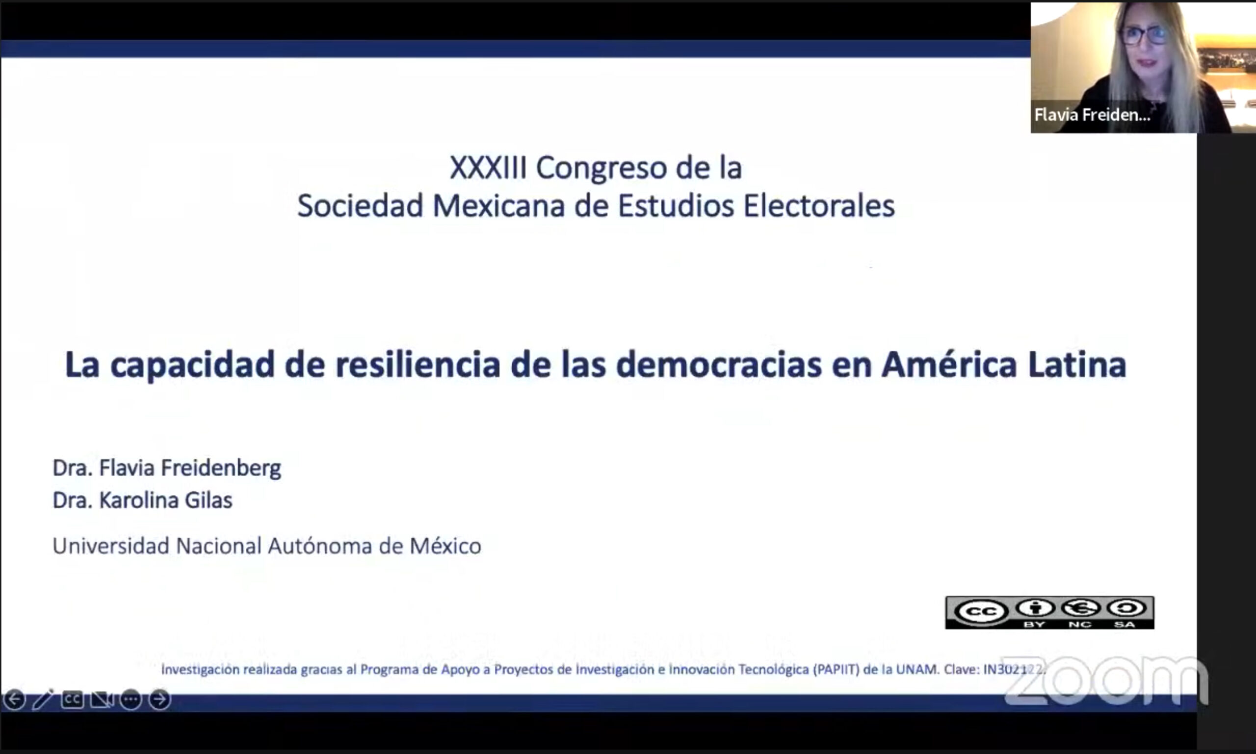 Por último, Flavia Freidenberg y Karolina Gilas abordaron la “Capacidad de resiliencia de las democracias en América Latina”, en donde explicaron la salud de las democracias antes de la epidemia en América Latina y qué hacer para fortalecer las democracias. Así, concluyeron que, para fortalecer la democracia, las instituciones deben fortalecer el árbitro electoral y crear puentes entre árbitro electoral y actores políticos.