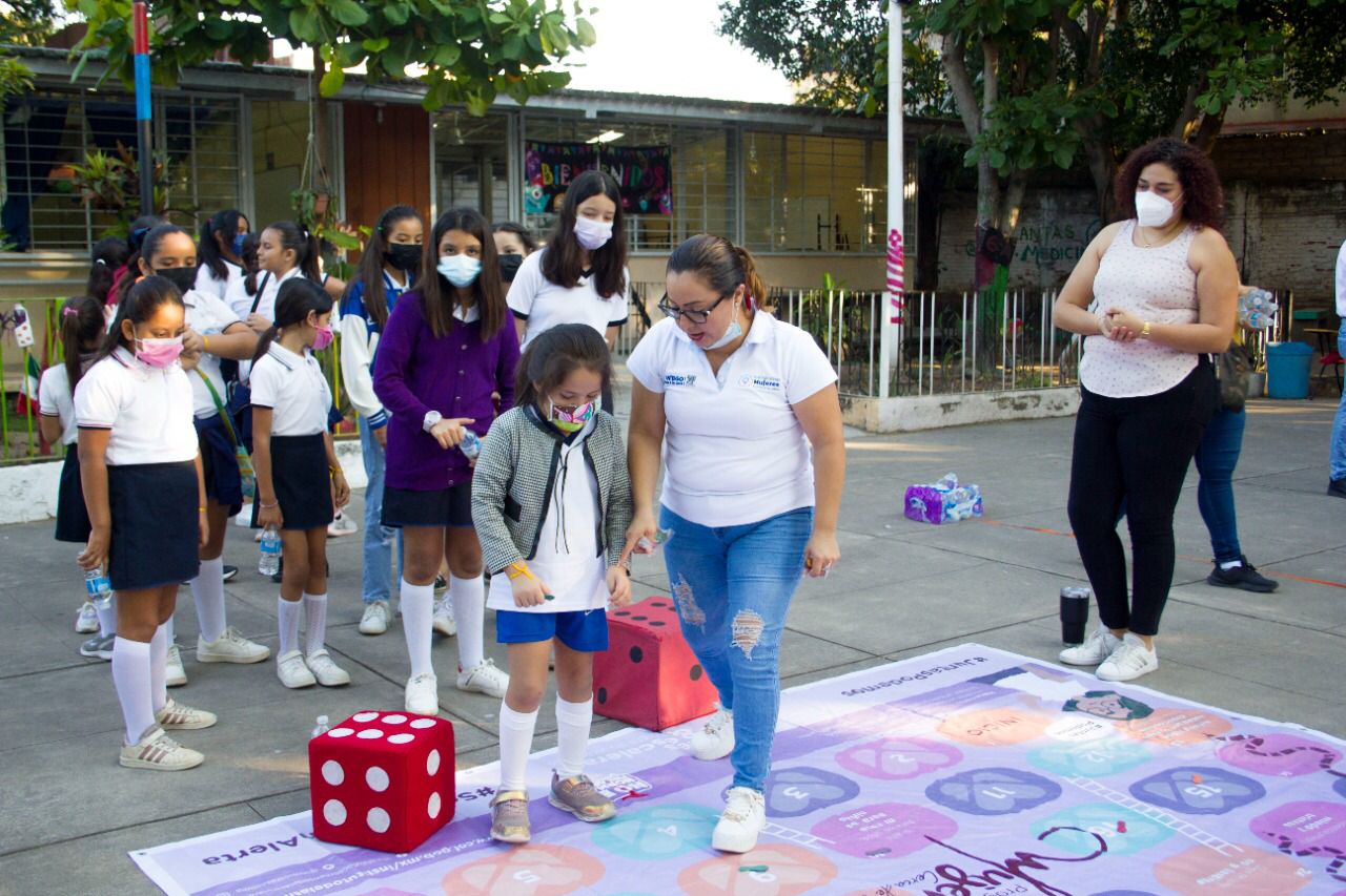 En su visita compartió, con las niñas de dicho plantel educativo, una charla sobre la prevención de la violencia, los derechos humanos de las mujeres y la eliminación de estereotipos de género.
