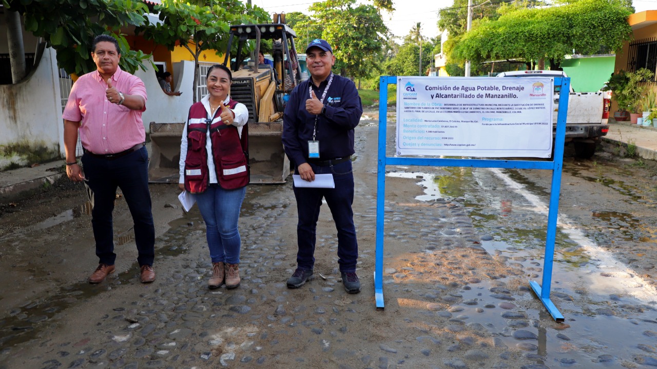 Junto con el director general de la Comisión de Agua Potable, Drenaje y Alcantarillado de Manzanillo (CAPDAM), Leonardo Chiprés y el director de Construcción del organismo operador, Juan Álvarez Echave, la presidenta municipal mencionó que en esta obra se invierte 1 millón 607 mil 346 pesos y beneficiará a 1 mil 300 habitantes de El Colomo.