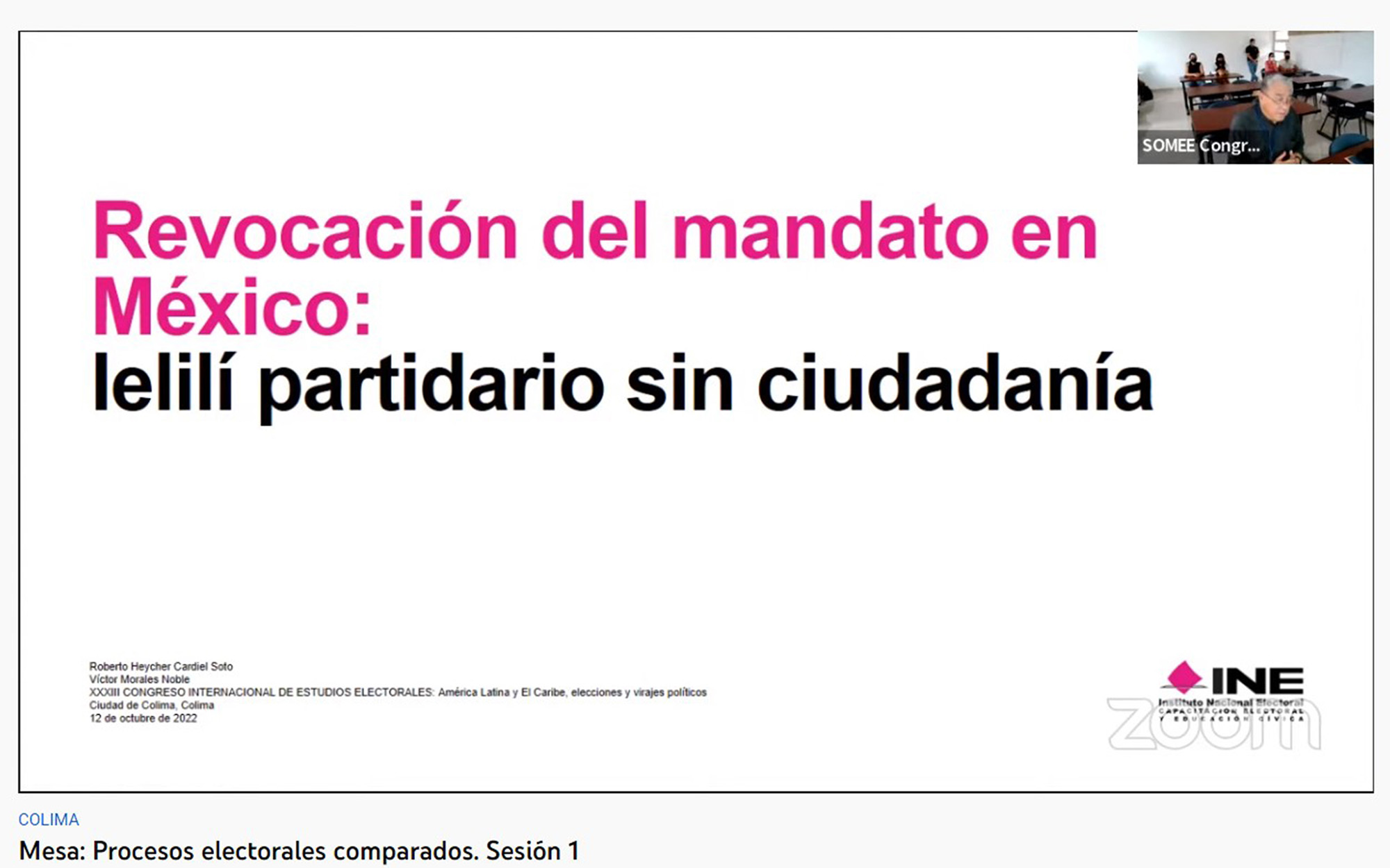 *XXXIII Congreso Internacional de estudios electorales, organizado por la Sociedad Mexicana de Estudios Electorales y del que es sede la Universidad de Colima.