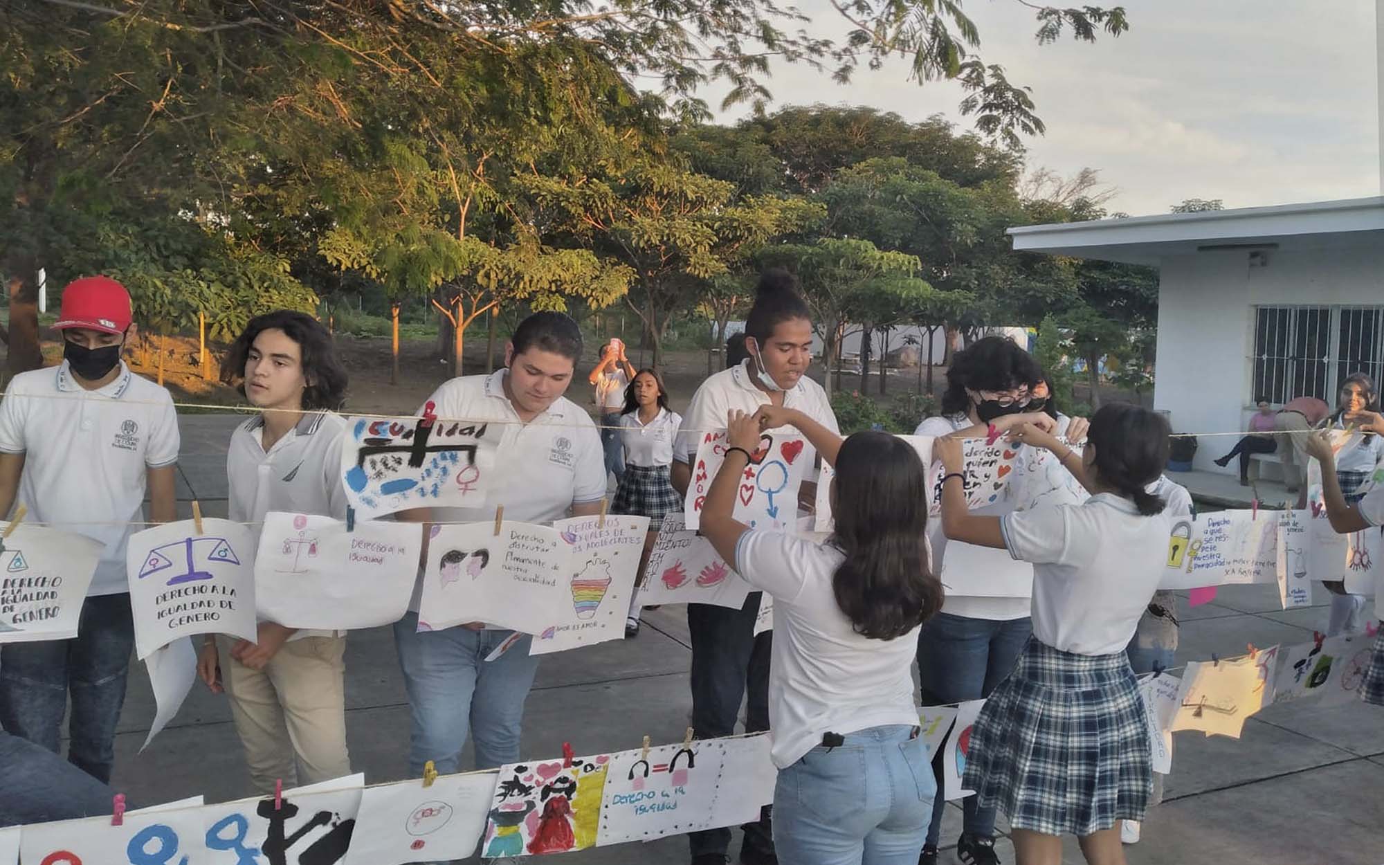En el marco de la semana para la prevención del embarazo adolescente, se realizó en el Bachillerato 34, rumbo al ISENCO, un Tendedero Artístico Reflexivo, evento que coordinaron la Universidad de Colima y el Grupo Interinstitucional para la Prevención del Embarazo Adolescente (GIPEA). Lo anterior se hizo bajo el argumento de que la sexualidad es una dimensión central del ser humano, presente en todas las etapas de la vida, y que el disfrute pleno y el placer son fundamentales para la salud y bienestar físico, mental y social.