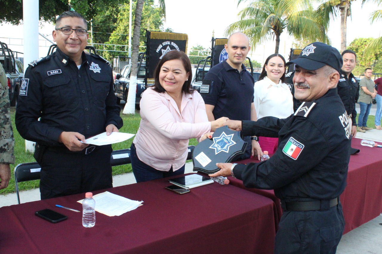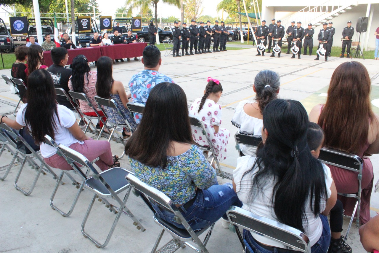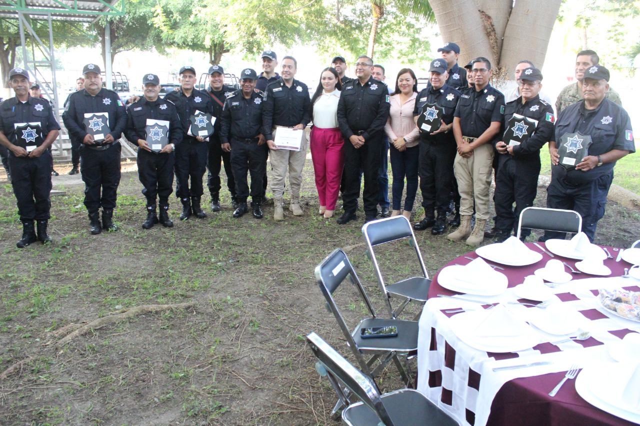 * Ma. Guadalupe Solís Ramírez reconoció la entrega y lealtad de los homenajeados. * El titular de SSP, Héctor Alfredo Castillo Báez, reconoció el respaldo de la familia en la carrera de los policías