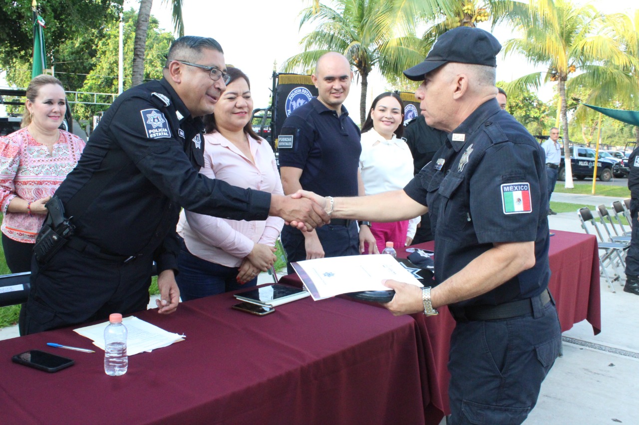 El secretario de Seguridad Pública, Héctor Alfredo Castillo Báez, celebró que tras 30 años de servicio este sábado 15 de octubre, ocho compañeros se retiren de la Policía Estatal Preventiva con el orgullo de haber portado con dignidad y eficacia su uniforme y haber servido a la ciudadanía.