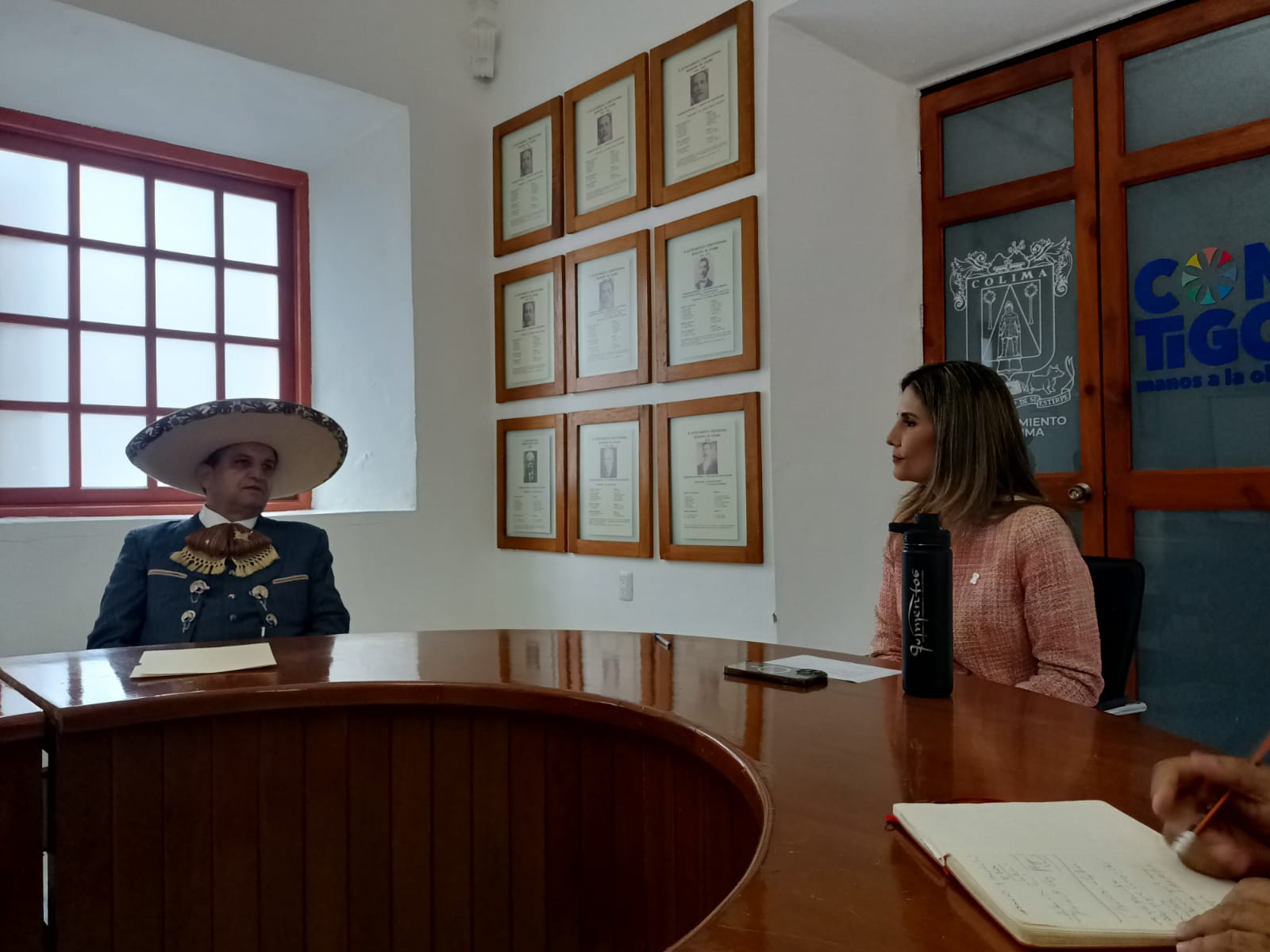 La Presidenta Municipal de Colima, Margarita Moreno González, recibió a Víctor Chávez Sánchez; Presidente de la Unión de Asociaciones de Charros de Colima, y coordinador de la organización del Cuarto Torneo de Charrería por equipos, que se desarrollará los días 5 y 6 de Noviembre, en el Lienzo charro “Hacienda El Alpuyeque”, y donde con agrado la munícipe capitalina, accedió la invitación para el evento y a trabajar de la mano con la charrería, pues expresó es un buen instrumento para resarcir el tejido social, al realizar esparcimiento con la familia en este deporte mexicano.