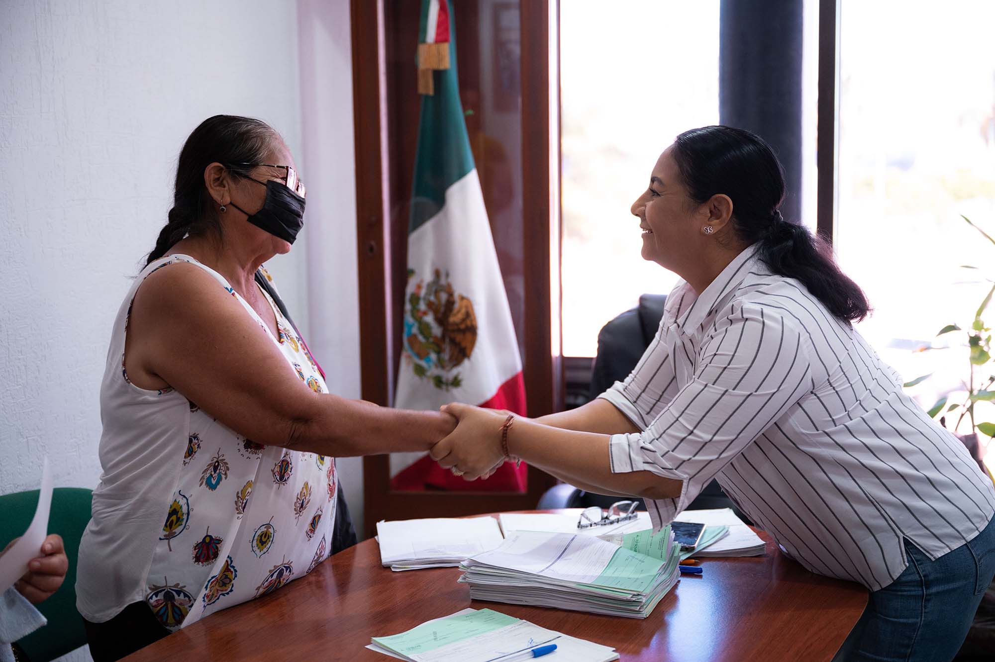 Griselda Martínez recibió a mujeres y hombres, jóvenes y adultos en la sala de juntas de la presidencia municipal en donde las y los beneficiarios complementaron la documentación correspondiente para poder recibir el vale bancario correspondiente.