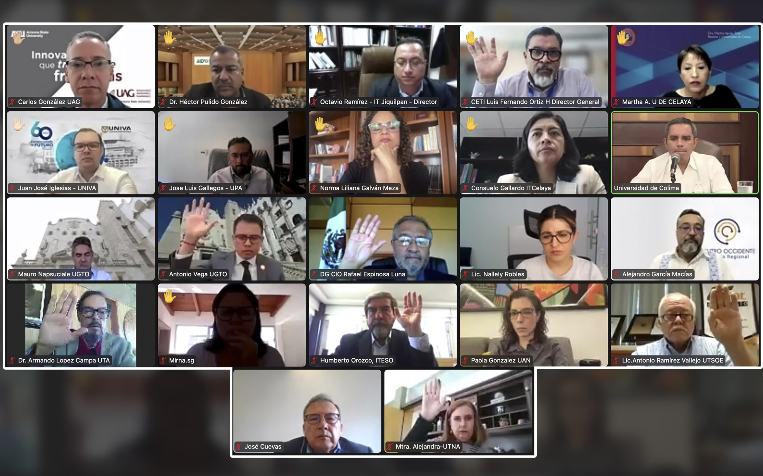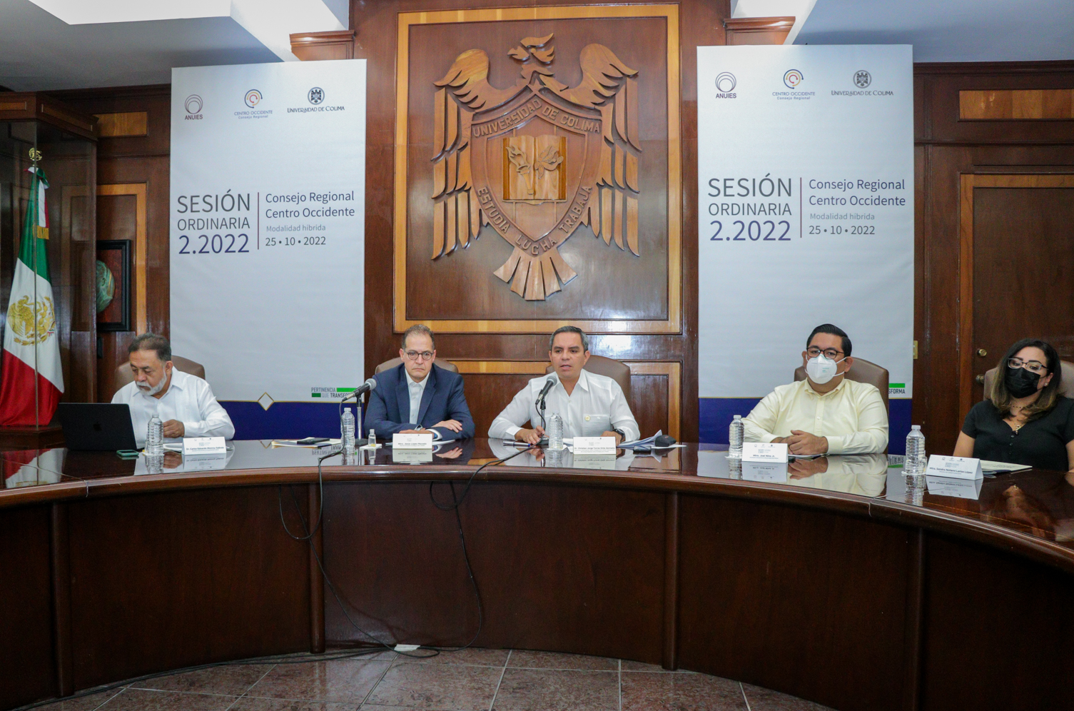 Este martes, la Universidad de Colima fue sede virtual de la segunda sesión ordinaria del Consejo de la Región Centro Occidente de la Asociación Nacional de Universidades e Instituciones de Educación Superior (CRCO-ANUIES), correspondiente al periodo 2021-2022, en la que se aprobó el ingreso de las universidades Politécnica de Guanajuato, de la Ciénega del Estado de Michoacán de Ocampo y de la Tecnológica de Calvillo y la UdeC propuso la creación de la Red de Gestión de Calidad y Mejora Continua, que fue aprobada.