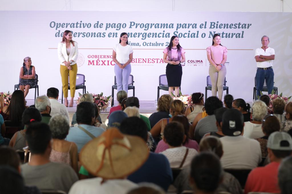 Al encabezar el operativo de pago del Programa para el Bienestar de las Personas en Emergencia Social o Natural (PESN), en Casino de la Feria de Manzanillo, la secretaria señaló que los apoyos son de 30 y 60 mil pesos para la recuperación de vivienda, así como de 45 mil pesos para quienes resultaron afectados en sus locales comerciales.
