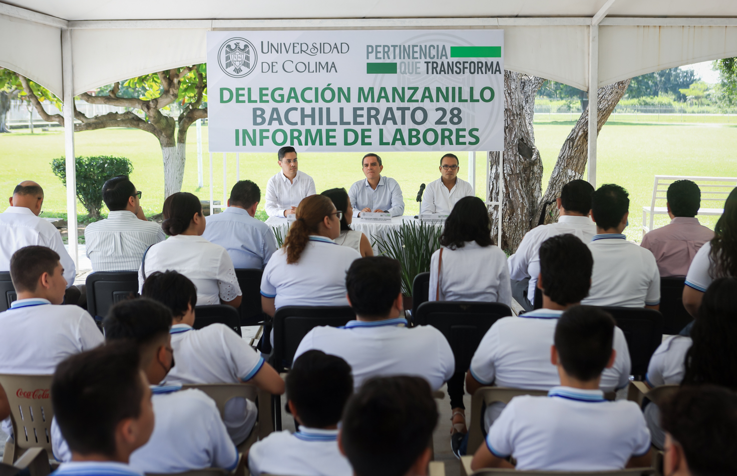 Este miércoles, se llevaron a cabo los informes de labores de los bachilleratos 23 y 28 de la Delegación Manzanillo de la Universidad de Colima. En ambos informes destaca la capacitación a los docentes en temas de mediación tecnológica, género, medio ambiente, áreas académicas, así como la vinculación de los estudiantes con actividades sociales.