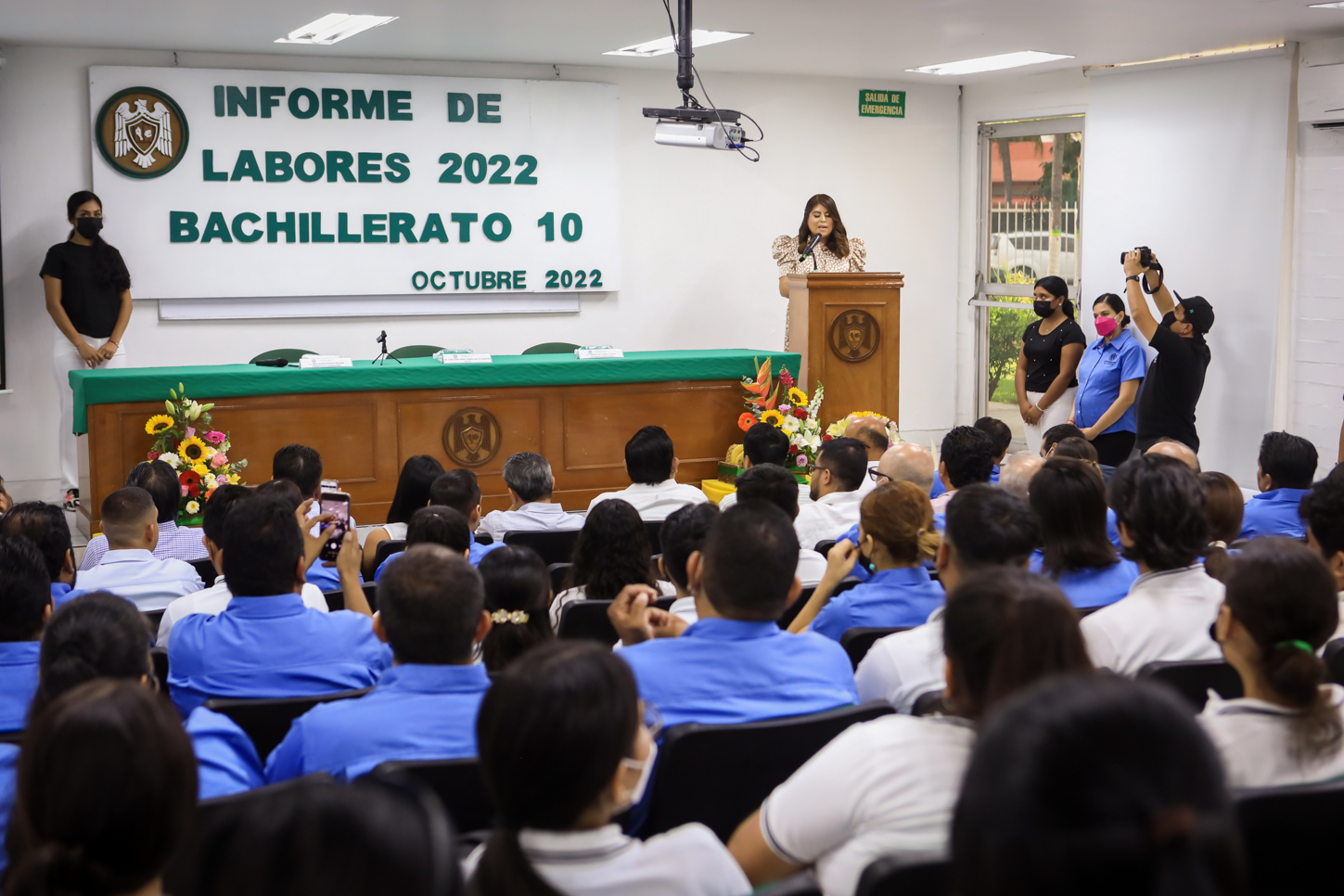 Asistieron a estos informes Joel Nino, secretario general; Ana María Gallardo, delegada universitaria de Manzanillo; Martín Robles de Anda, director general de Educación Media Superior; Rogelio Pinto, coordinador de Planeación y Desarrollo Institucional y Hugo Barreto, director general de Administración Escolar. Al informe del Bachillerato 10 también asistieron Francisco Hernández Lara, director de Recursos Humanos de Marindustrias y Alberto García Canchola, director de Operaciones de esa misma empresa.