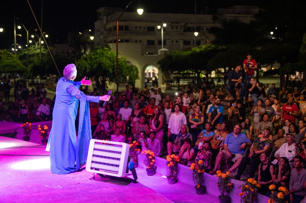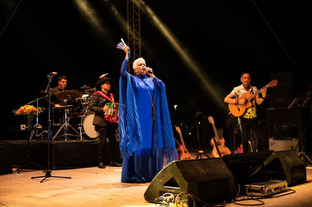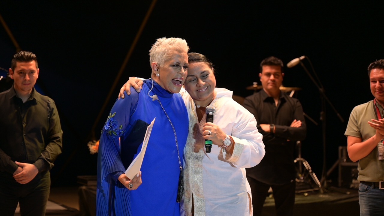 La presidenta Griselda Martínez al agradecer la visita de la cantante, le entregó un reconocimiento y réplicas de piezas arqueológicas de la región por su participación en este Festival que hace honor a las personas que ya se han ido.