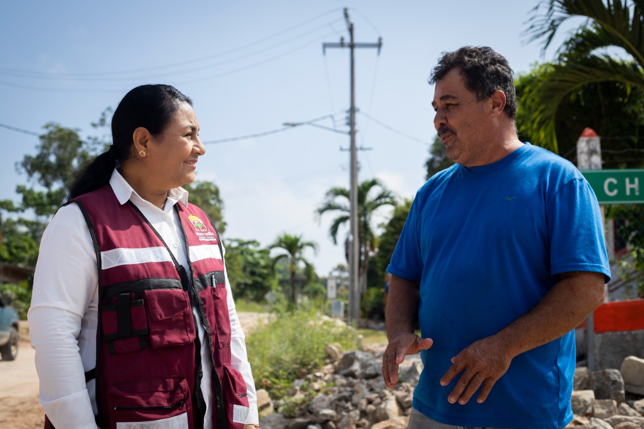 El comisario municipal, Carlos Vázquez Uribe, agradeció a la presidenta Griselda Martínez la renovación con concreto hidráulico el ingreso a su comunidad, “aquí teníamos que juntarnos todos con palas o rentar una retroexcavadora cada que llovía para poder pasar, pero ahora la gente está muy contenta”.
