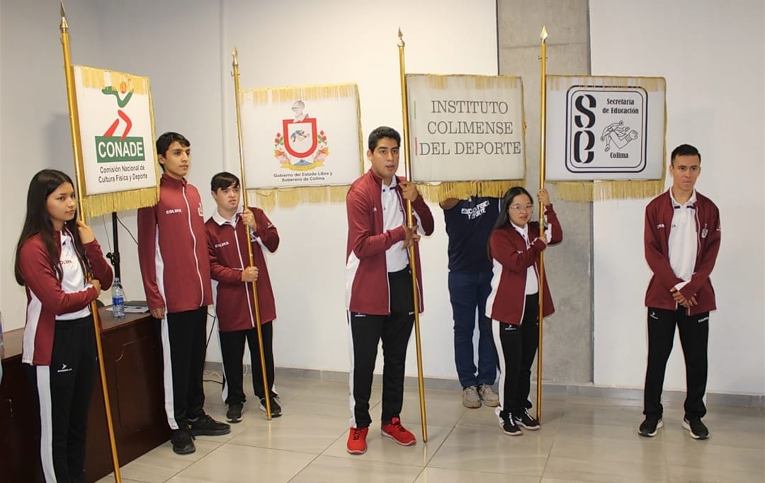 Ante el director general del Instituto Colimense para la Discapacidad (Incodis), David Enyelnim Monroy Rodríguez, familiares de las y los paratletas, el titular del Incode abanderó a Karol Mariana Segoviano con el estandarte de la Secretaría de Educación y Cultura; a Yaretzi Janeth Cristóbal Santana con el de la Comisión Nacional de Cultura Física y Deporte (Conade); a José Enrique Venegas Sánchez con el del Incode y a José Enrique Guerrero López con el estandarte de Gobierno del Estado de Colima.