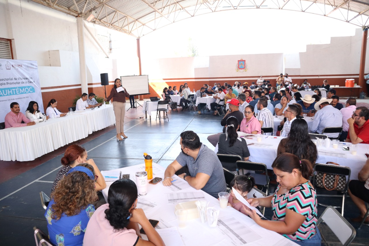 Con una nutrida participación de representantes de diversos sectores de la población, se llevó a cabo en Cuauhtémoc el Taller Intersectorial de Planeación para un Municipio Promotor de la Salud, encabezado por la presidenta municipal, Gabriela Mejía Martínez, autoridades auxiliares, ejidales y del Sector Salud
