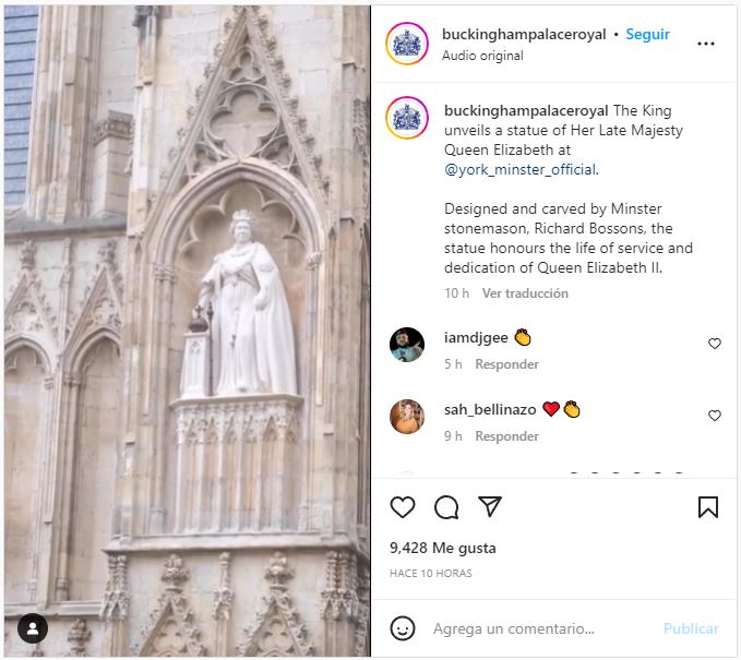 “La difunta reina siempre estuvo vigilante por el bienestar de su gente durante su vida, ahora su imagen velará en la ahora Plaza de la reina Isabel durante los próximos siglos”, se lee en la descripción de un video que fue publicado en las redes sociales del Palacio de Buckingham.