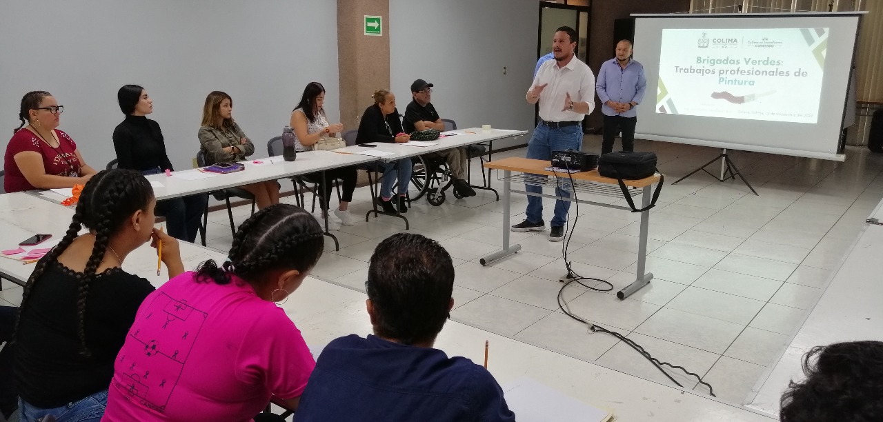 Francisco Javier Pinto Torres, subsecretario del Trabajo del Gobierno del Estado de Colima, inauguró este lunes la capacitación sobre liderazgo y habilidades transversales para integrantes de la primera etapa del programa ‘Brigadas Verdes’, que la dependencia a su cargo realiza a fin de brindar oportunidades laborales a grupos vulnerables y rescatar espacios públicos que sean aprovechados por el mayor número posible de colimenses, coadyuvando a reducir la contaminación visual y promoviendo el desarrollo comunitario y la conservación de áreas verdes públicas.