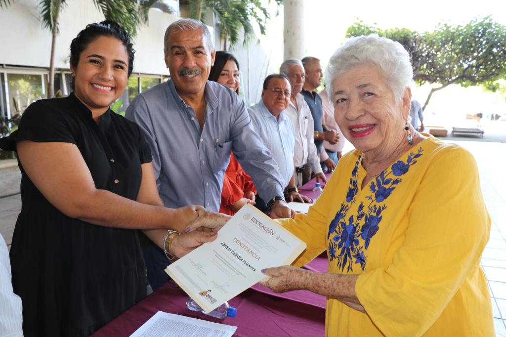 El Secretario de Educación y Cultura del Gobierno del Estado de Colima, Adolfo Núñez González, y la subsecretaria de Educación, María del Rosario Silva Verduzco, directora general de la Coordinación de Servicios Educativos, entregaron constancias a docentes que hicieron el curso formadoras y formadores para la Estrategia de Reforzamiento de Aprendizajes 2022 “Vamos más allá”, aplicada en Colima y otras siete entidades del país, encaminada al fortalecer los aprendizajes de español y matemáticas en alumnas y alumnos de sexto de primaria y tercero de secundaria.