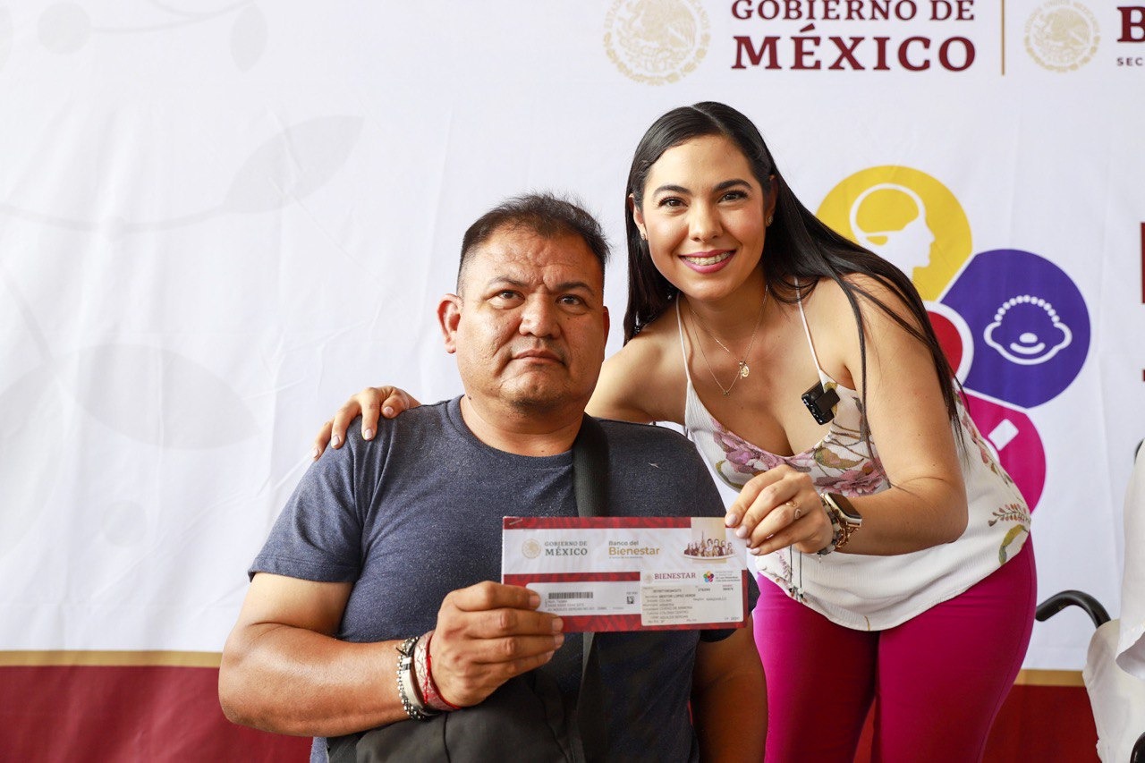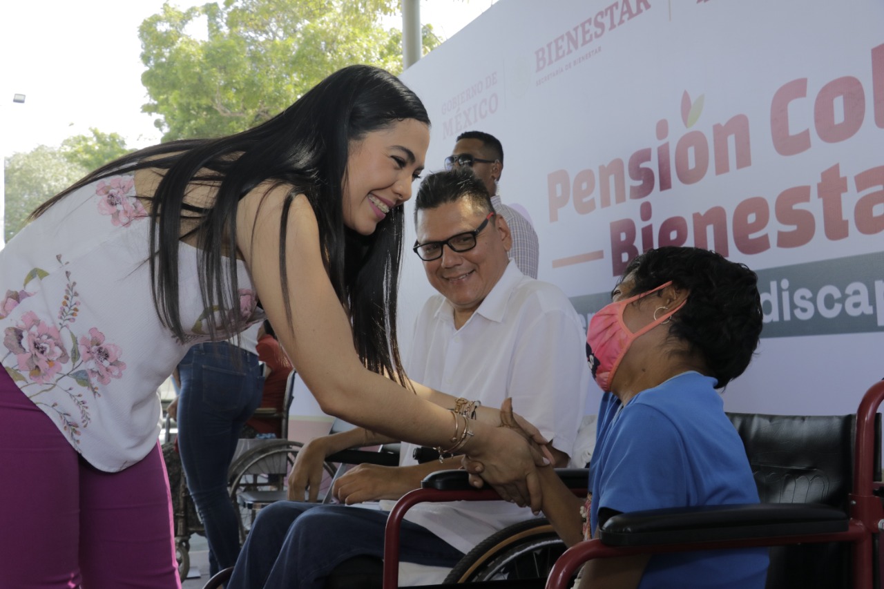 Ana Karen Hernández se dijo orgullosa de participar en la entrega de estas tarjetas, pues indicó que esta pensión materializa los anhelos más sentidos de la Cuarta Transformación: “primero la búsqueda de la justicia social y mejorar las condiciones de vida de las personas que más lo necesitan”.
