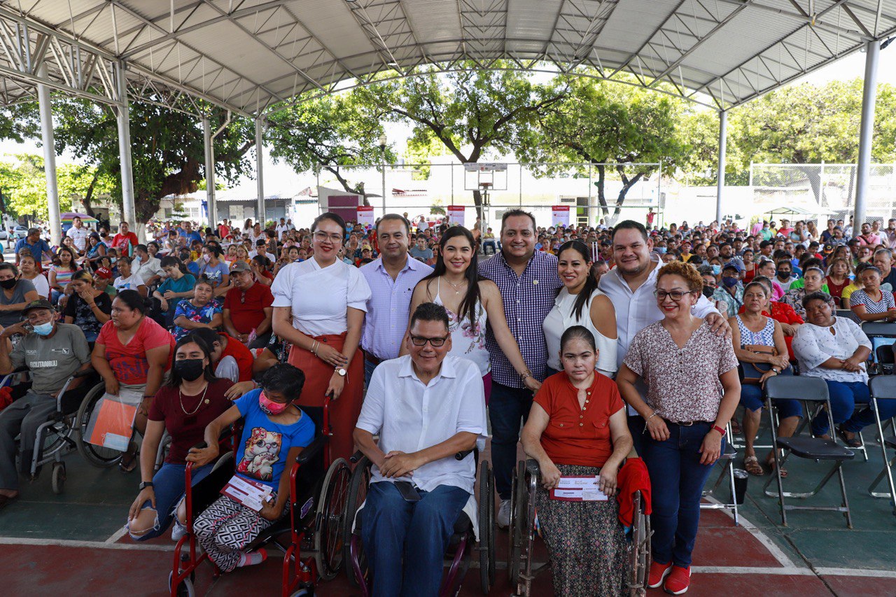 La gobernadora del estado de Colima, Indira Vizcaíno Silva, y la directora regional de Programas para el Bienestar, Ana Karen Hernández Aceves, entregaron este jueves, tarjetas de la Pensión para el Bienestar de Personas con Discapacidad, beneficiando a 488 personas (136 de Armería y 352 de Tecomán) con recursos por 2 millones 732 mil 600 pesos (761 mil 600 en el primer municipio y un millón 971 mil pesos en el segundo).
