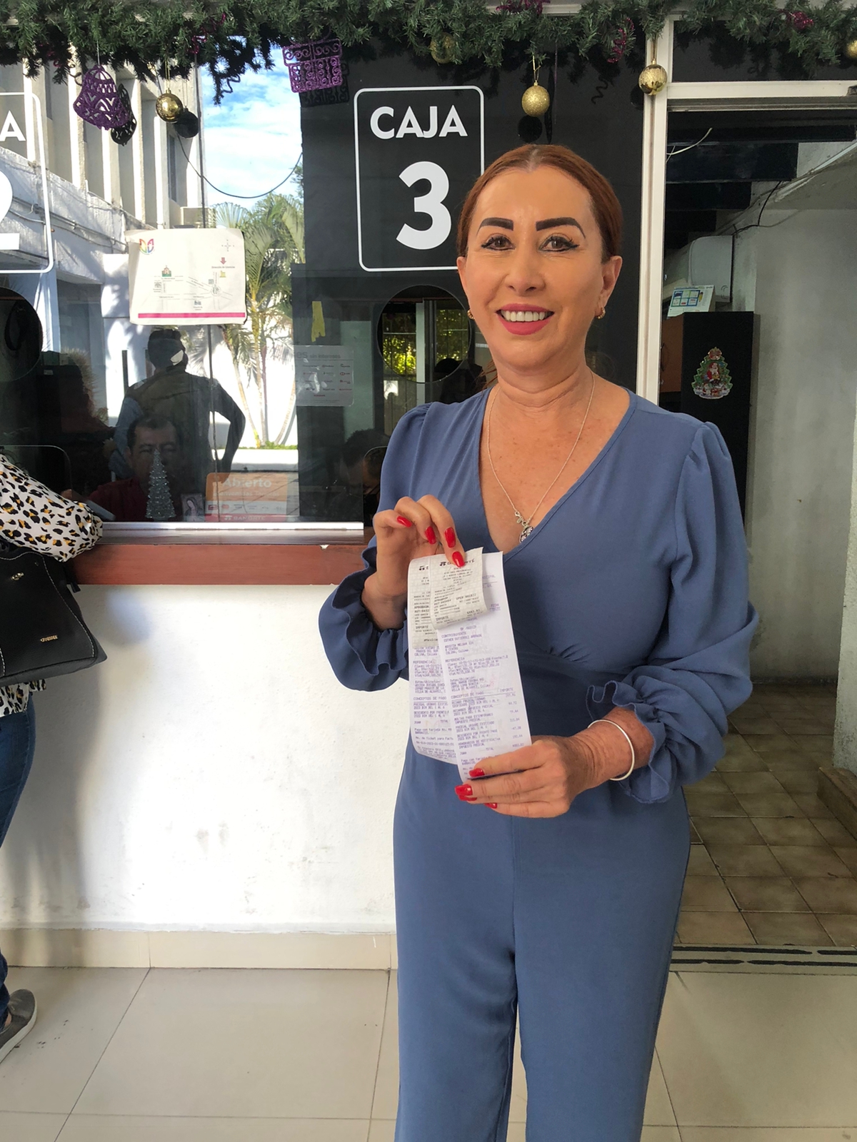 · Alcaldesa Tey Gutiérrez acude a la ventanilla de Palacio Municipal a realizar el pago de su contribución.