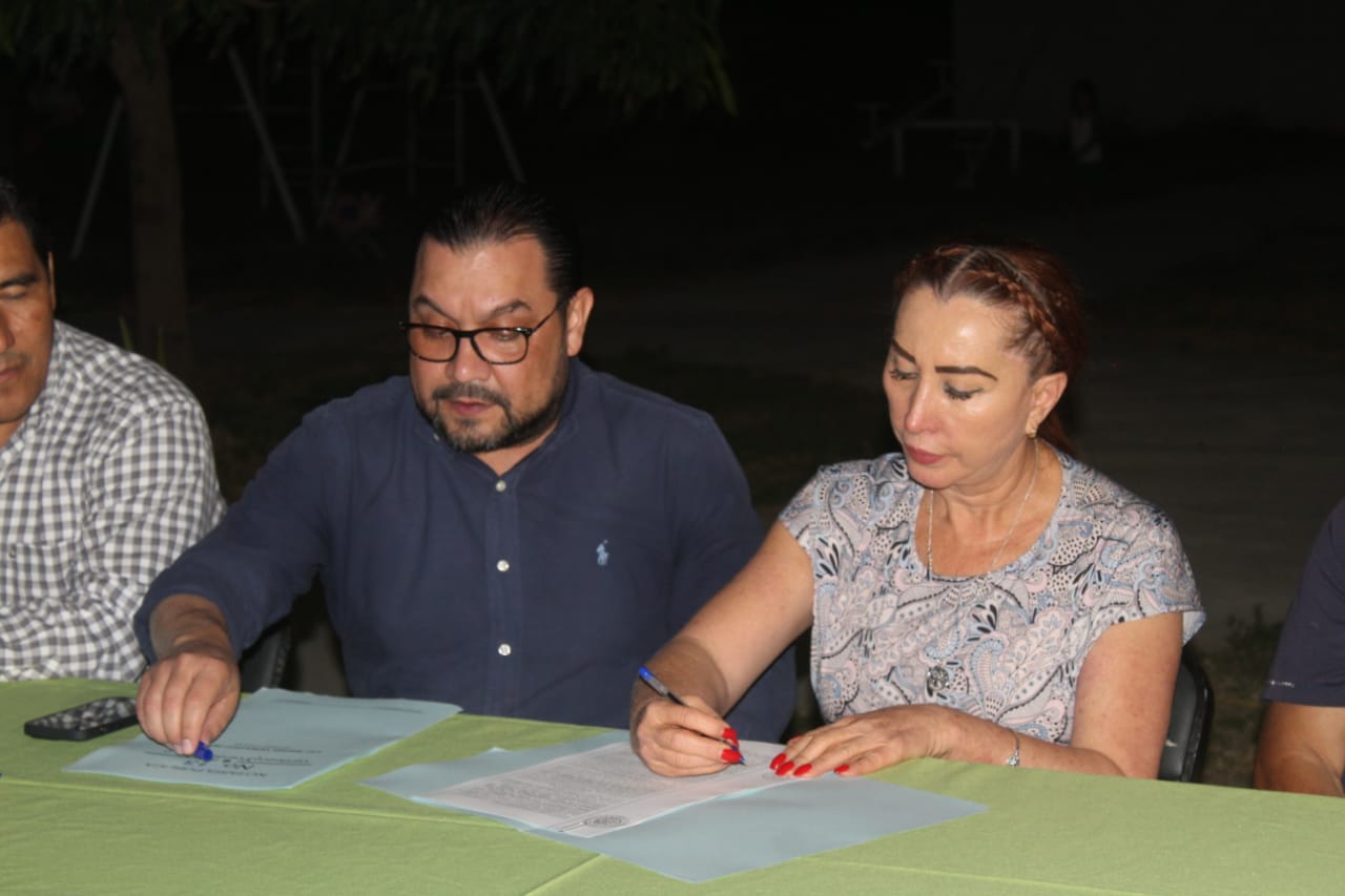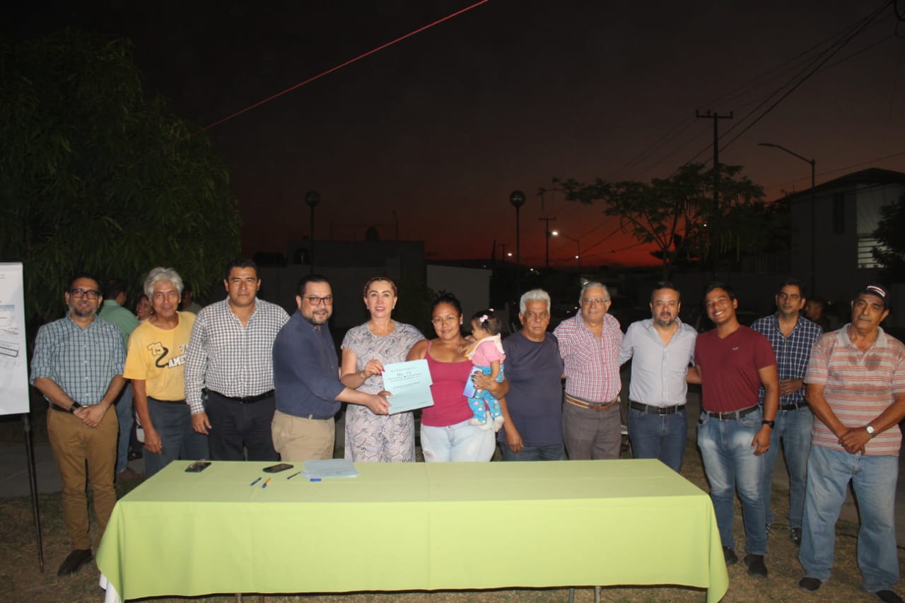Ante vecinas y vecinos de la colonia Real Centenario II, la Presidenta Municipal Tey Gutiérrez firmó las escrituras que acreditan como propiedad del Ayuntamiento de Villa de Álvarez los terrenos de uso común de ese asentamiento, paso previo para la municipalización del fraccionamiento.