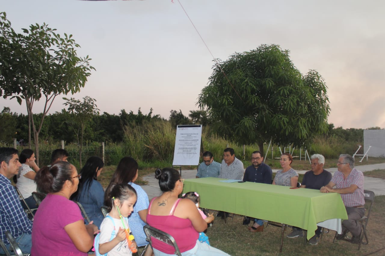 Por su parte, Rafael Verduzco, titular de la Notaría Pública Número 13, destacó que ese acto protocolario, que por lo regular se hace en la Notaría, a solicitud de la Presidenta Tey Gutiérrez se hace de forma pública y frente a las vecinas y vecinos, para que tengan la certeza de que el área de donación ya  no es propiedad del constructor, sino del gobierno municipal y por consecuencia de la población para su disfrute.
