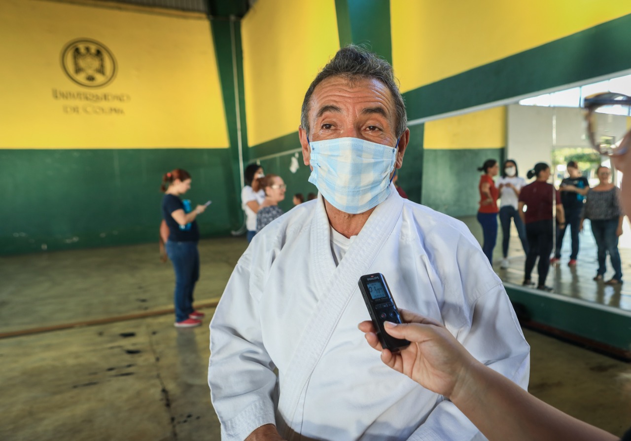 Como parte de las Jornadas Académicas 2023 de la Universidad de Colima, se lleva a cabo en el Polideportivo Universitario, el taller “Defensa personal”, dirigido a docentes y personal de apoyo académico, a cargo de los maestros Cristóbal Alejandro Aburto Tinoco y José Oca Montes.