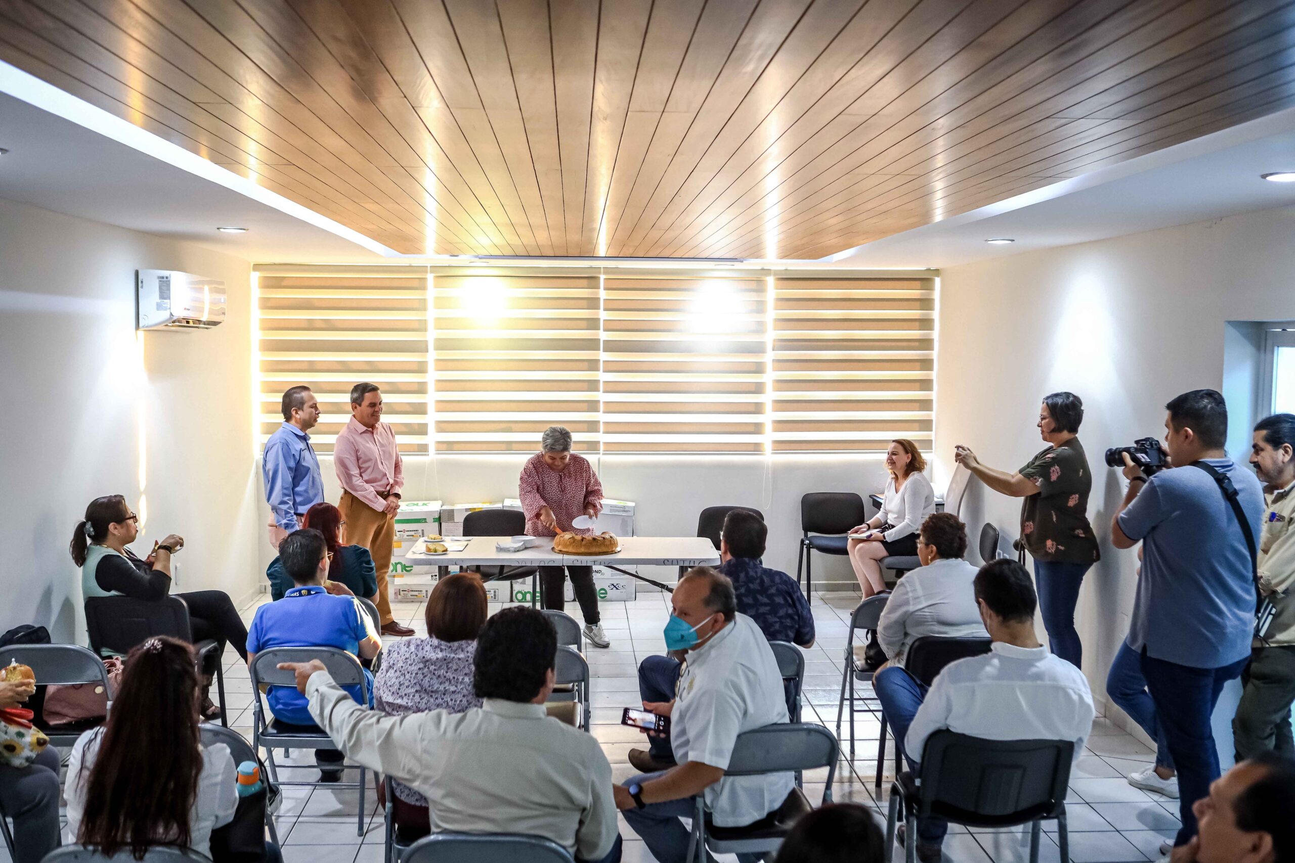 Una vez partida la rosca, las y los trabajadores conversaron con Christian Torres Ortiz, a quien le reconocieron su liderazgo y sensibilidad para escuchar a estudiantes y a las y los trabajadores.