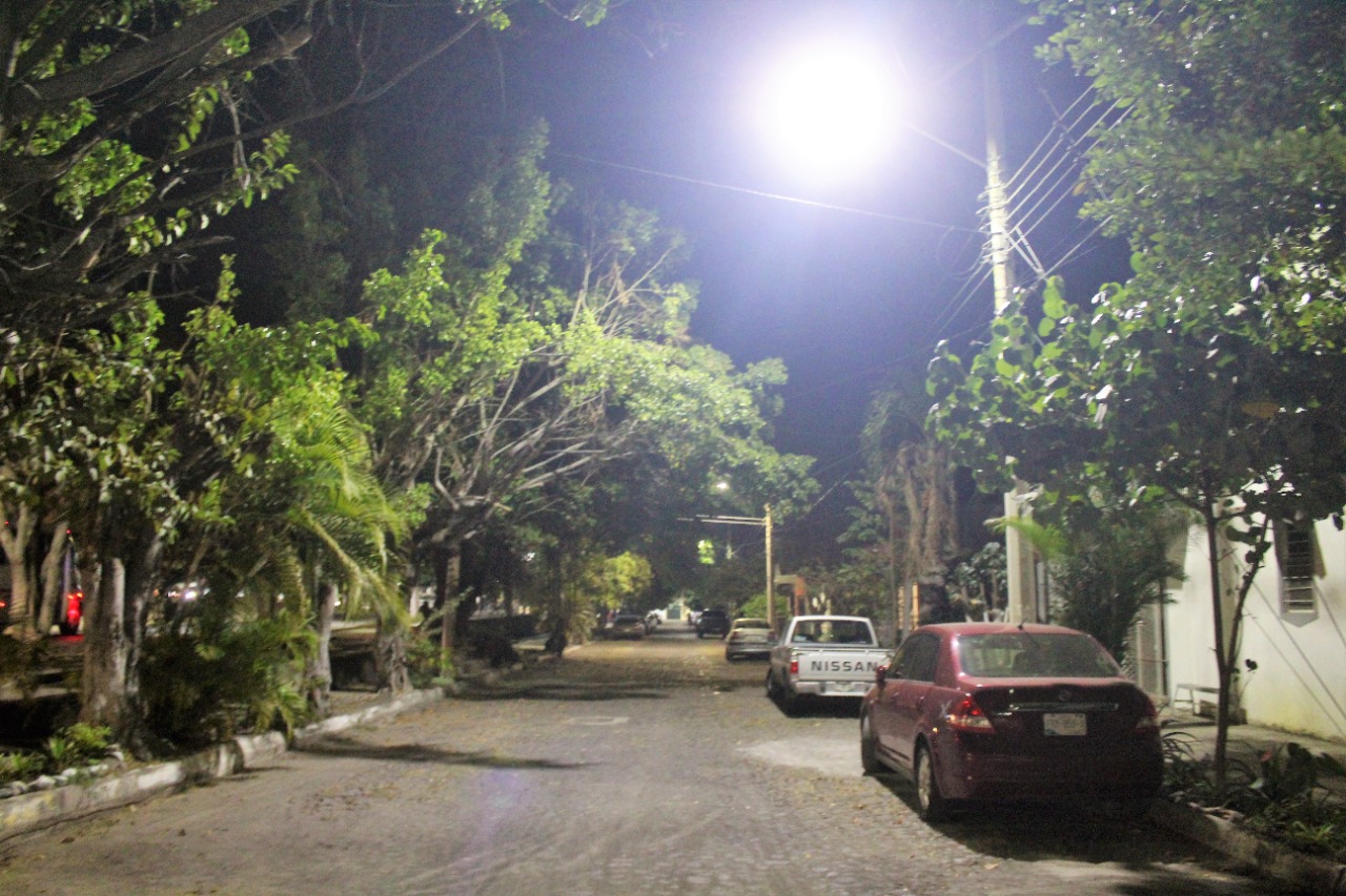 De igual manera en la colonia Ramón Serrano, fueron rehabilitadas 30 luminarias más, de luz led, en beneficio de sus más de 2 mil 300 habitantes.