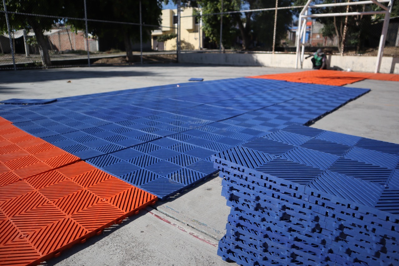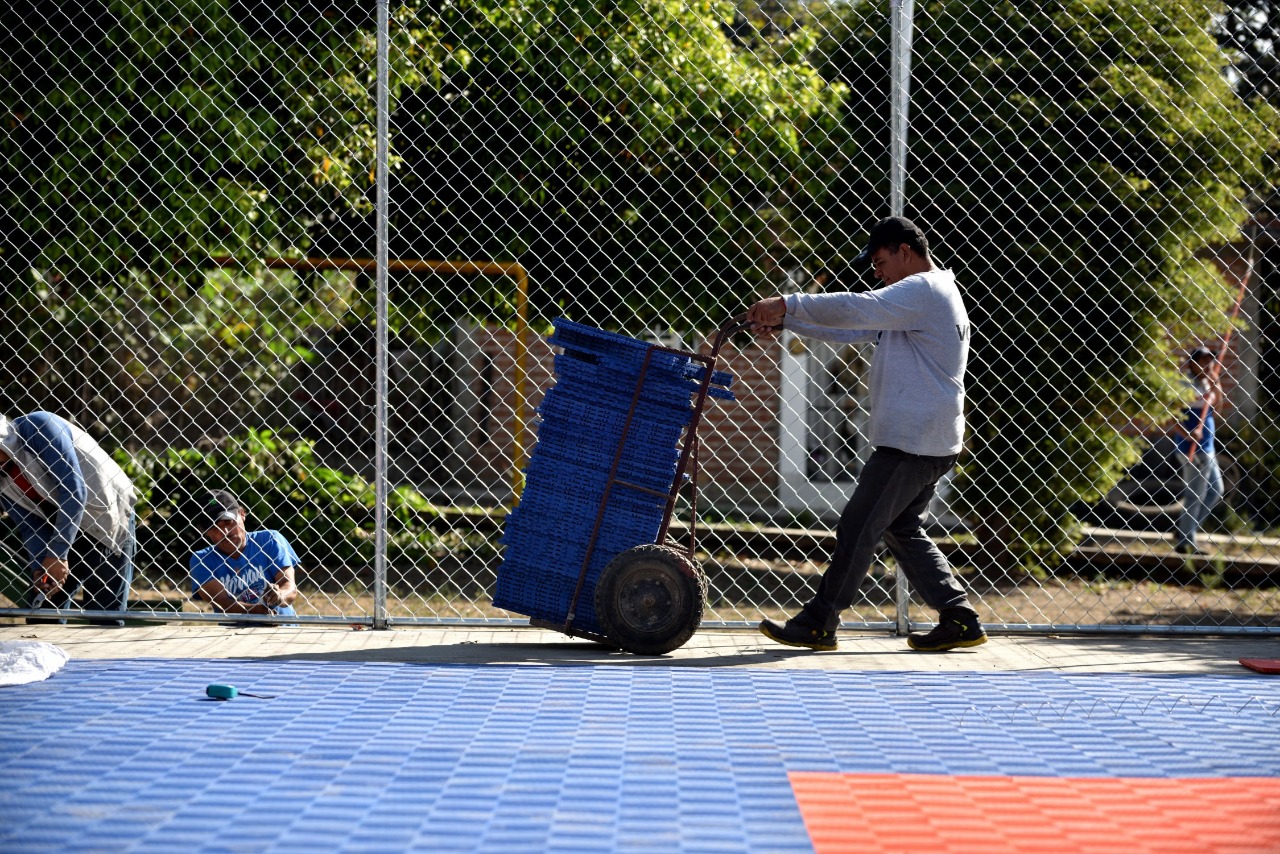 Detalló que en ambos casos se coloca malla ciclónica como cerco perimetral y un recubrimiento plástico, que permite amortiguar el impacto físico de los usuarios con el piso durante la práctica del basquetbol y otras disciplinas, además de ser más seguro por tratarse de un material antiderrapante.