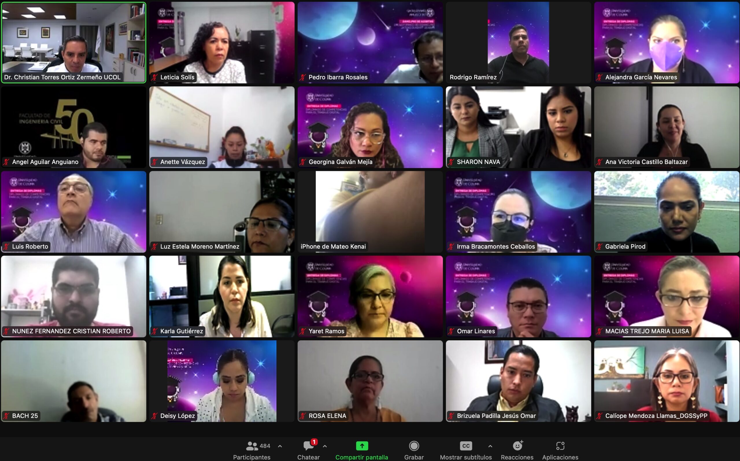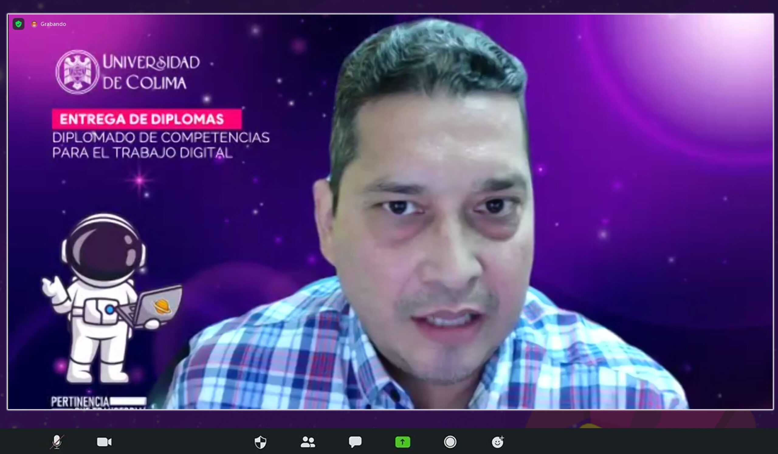 El rector de la Universidad de Colima, Christian Jorge Torres Ortiz Zermeño presidió este miércoles, de manera virtual, la entrega de Diplomas y Constancias del Diplomado Agentes TIC: “Competencias para el Trabajo Digital”, que organizaron la Dirección General de Recursos Humanos, el Centro Universitario para el Bienestar Integral y la Dirección General de Integración de las Tecnologías de Información.