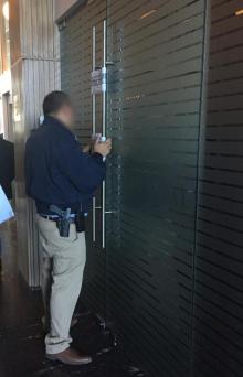Personal Especializado de la Dirección General de Delitos Patrimoniales y Financieros de la Fiscalía del Estado (FE) ejecutó una orden de cateo en una torre corporativa donde se aseguraron documentos relacionados con una financiera.