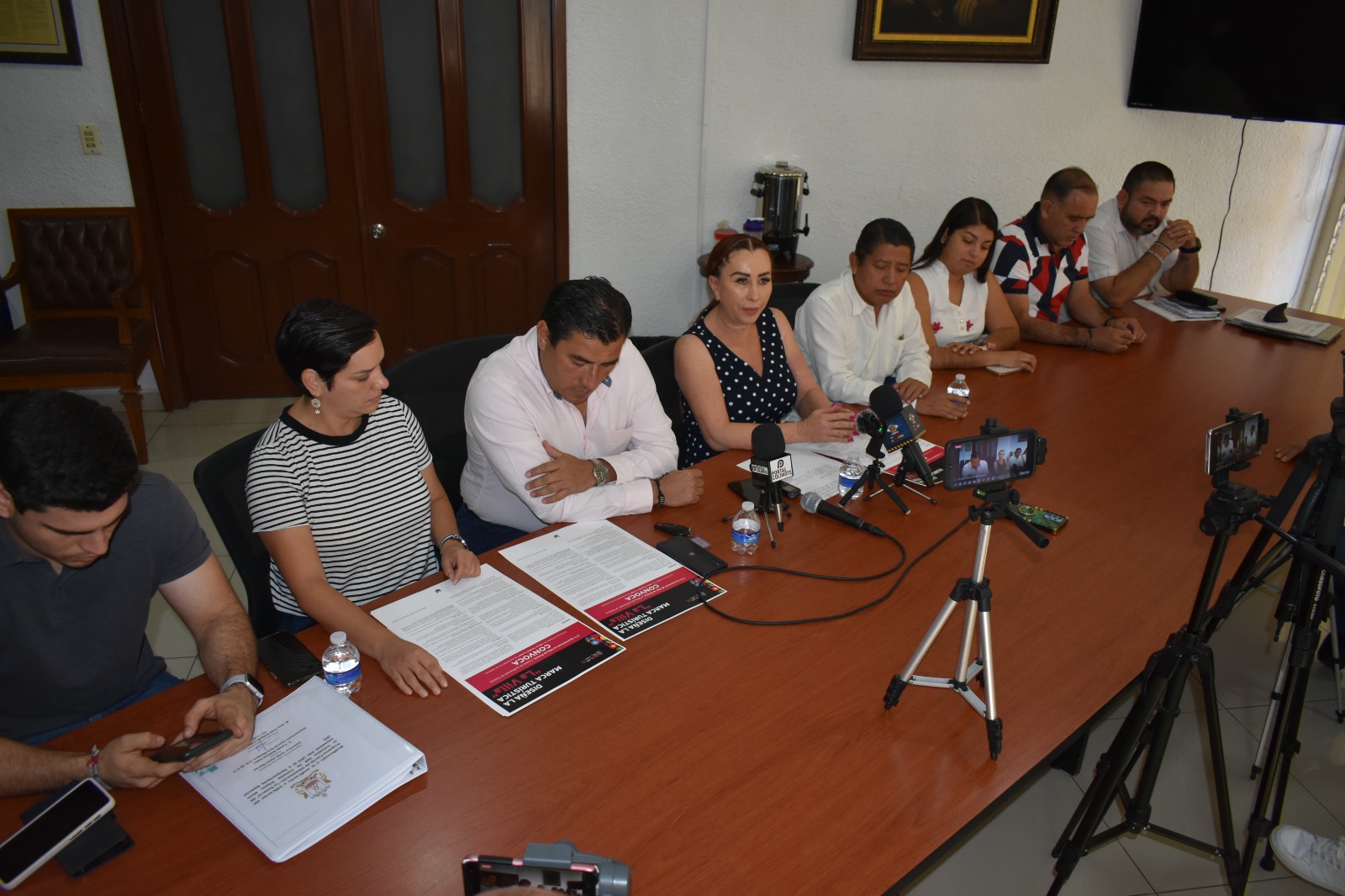 A la conferencia de prensa de presentación de la convocatoria, que puede ser consultada en www.villadealvarez.gob.mx y en la página de Facebook del Ayuntamiento de Villa de Álvarez, asistieron el Síndico José Santos Dolores; los Regidores Adrián López, Guillermo Toscano y Valeria Tintos, y el Secretario del Ayuntamiento, Alfredo Chávez.