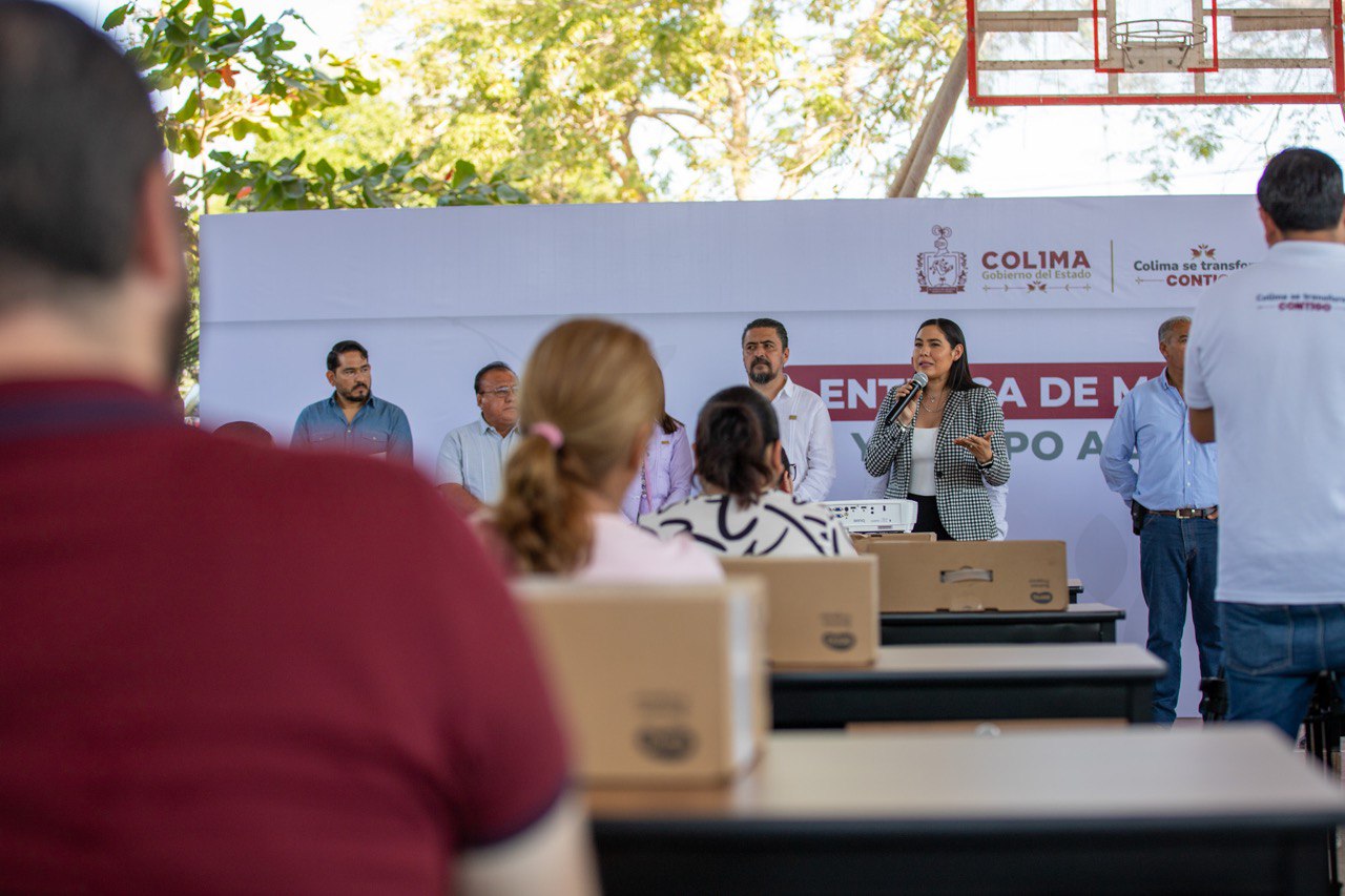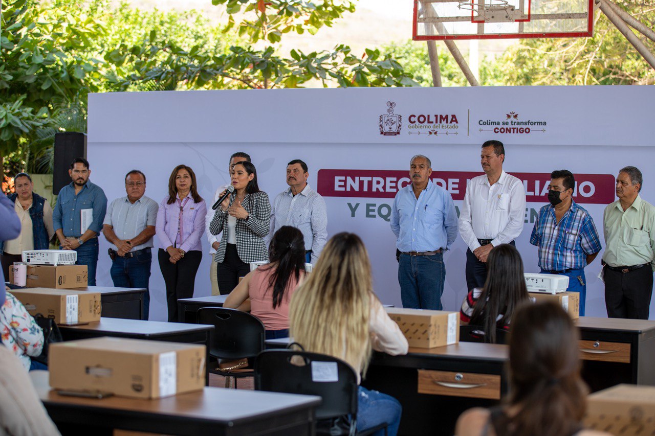 En gira por Ixtlahuacán, la gobernadora de Colima, Indira Vizcaíno Silva, entregó mobiliario nuevo y equipo docente para 17 escuelas de este municipio, acompañada por el secretario de Educación y Cultura, dirigentes del SNTE y el presidente municipal, donde reiteró que para su administración es una prioridad invertir en la educación, “visto desde la perspectiva que la educación es el único camino seguro para reconstruir la paz en nuestro estado e ir formando las nuevas generaciones”.