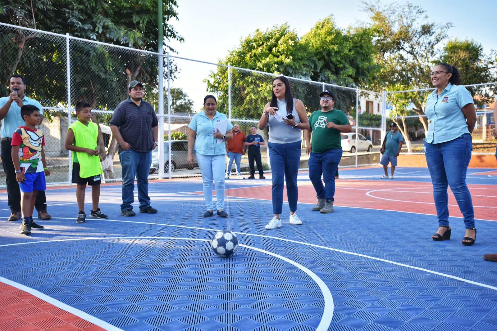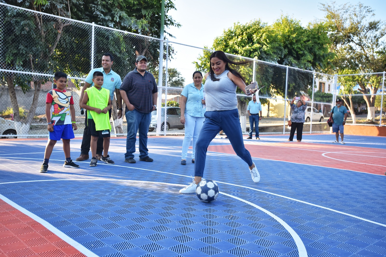 Los espacios se cubrieron con módulos de polipropileno con pigmentación orgánica y se colocó nueva malla ciclónica, además de rehabilitar la pintura en algunas áreas, como parte del programa de recuperación de espacios públicos e impulso al deporte, con una inversión superior al millón 350 mil pesos.