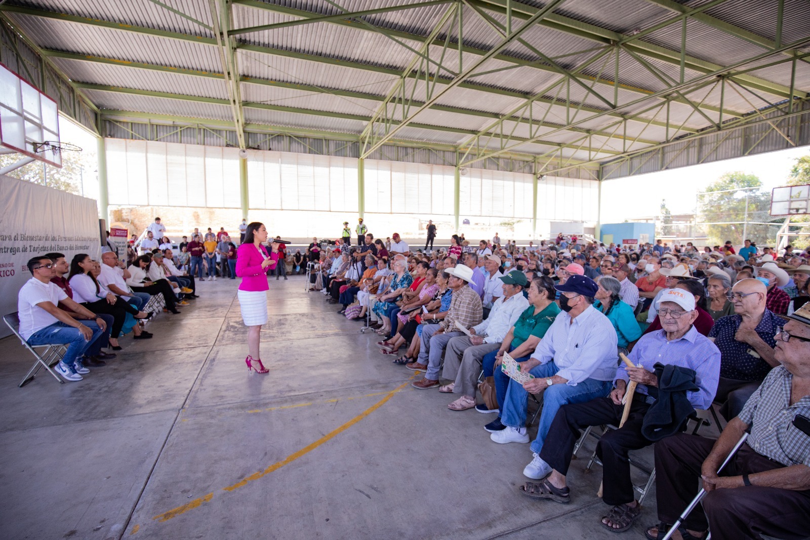 La delegada del Bienestar, Viri Valencia, dijo que gracias a la iniciativa presidencial que fue aprobada por las y los diputados federales de la Cuarta Transformación, “ustedes tienen garantizado que ningún otro gobierno, sea el que sea, les pueda quitar este derecho; desde 2019 está en la Constitución que todas y todos los adultos mayores a partir de 65 años, pueden acceder a esta Pensión para el Bienestar de las Personas Adultas Mayores y también garantizamos que llegue a todos pues antes era para unos cuantos”.