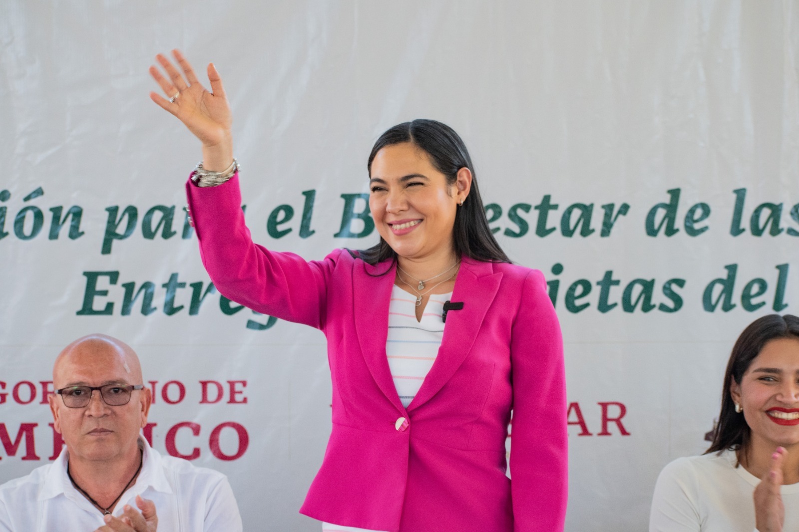 La gobernadora de Colima, Indira Vizcaíno Silva, y Viridiana Valencia Vargas, delegada de Programas para el Bienestar del Gobierno de México en la entidad, participaron este lunes en la entrega de 864 tarjetas del Banco del Bienestar para la Pensión a Personas Adultas Mayores del municipio de Comala, que se efectuó en la cancha techada de la colonia La Trinidad, de las cuales 821 corresponden al proceso de bancarización y 43 de nueva incorporación. Cada persona beneficiaria recibe 4,800 pesos bimestrales.
