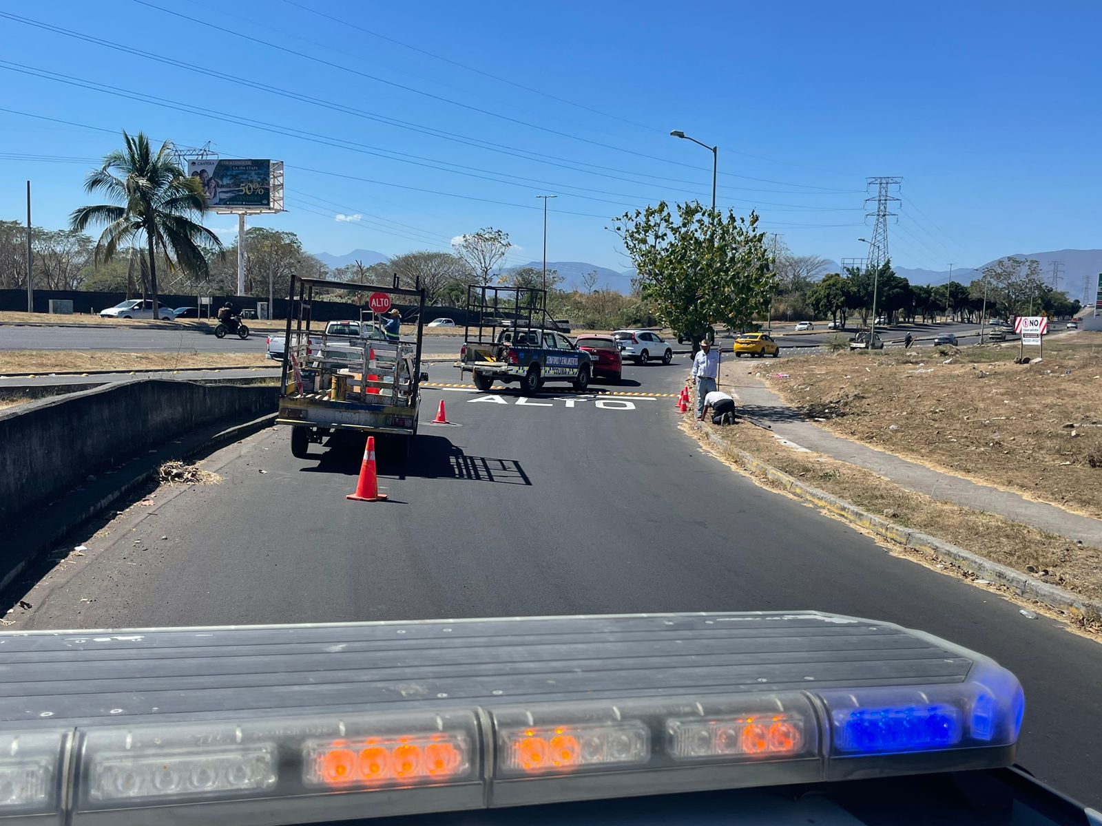Con el objetivo de reducir los riesgos de accidentes viales y de garantizar la integridad de las y los conductores y personas que circulan por el lugar, el Ayuntamiento de Colima, encabezado por Margarita Moreno, realizó trabajos de colocación de señalética de seguridad y balizamiento en el cruce de la avenida Ignacio Sandoval y la lateral del Paseo Miguel de la Madrid.