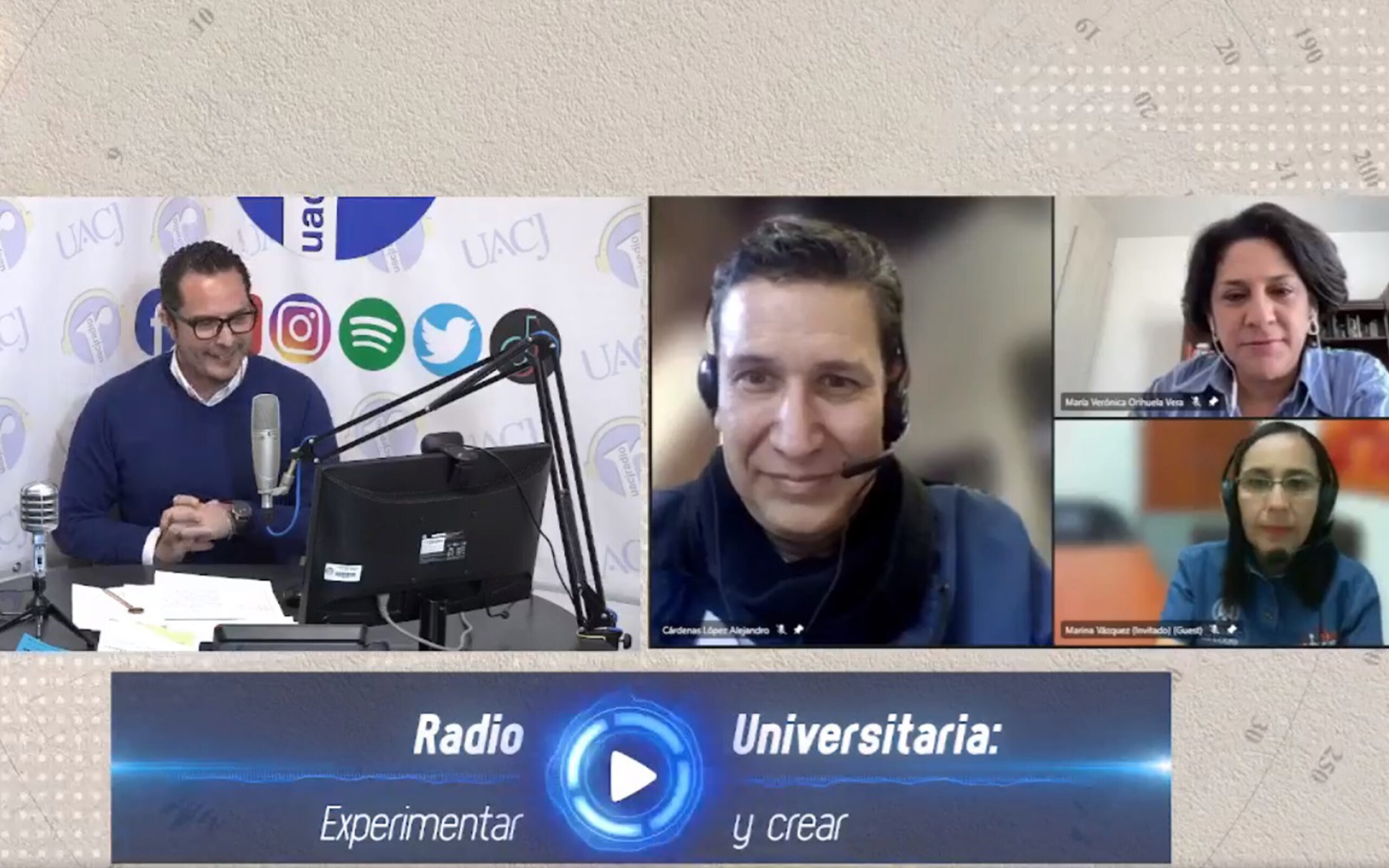 En el marco del Día Mundial de la Radio, que se celebra el 13 de febrero, la académica universitaria y directora de Universo 94.9, Marina Vázquez Guerrero participó como parte de un grupo de especialistas en el programa “Radio Universitaria: experimentar y crear”, transmitido esta semana por la emisora de la Universidad Autónoma de Ciudad Juárez (UACJ Radio).