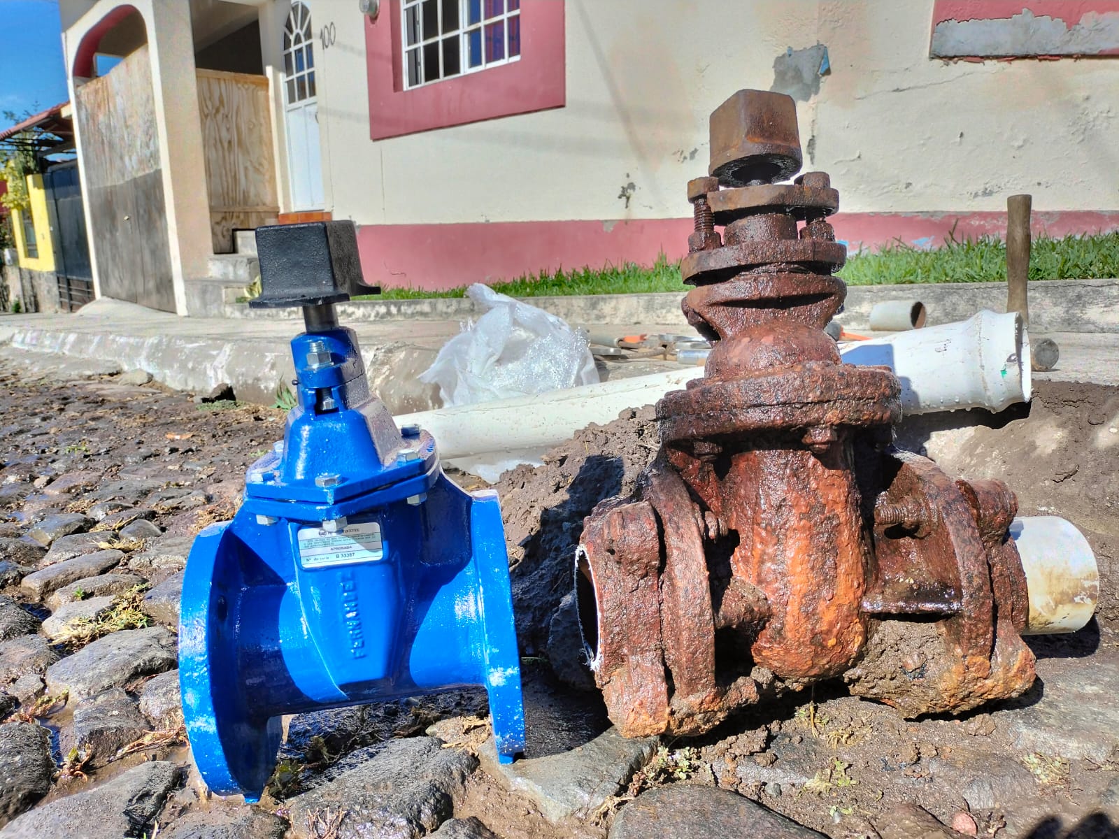 Este jueves 16 de febrero, la Dirección de Redes de Agua de la Comisión Intermunicipal de Agua Potable y Alcantarillado de los Municipios de Colima y Villa de Álvarez (CIAPACOV), realizó los trabajos de sustitución de ocho válvulas de compuerta: dos de 2 pulgadas, y seis de 3 pulgadas, en la calle Uxmal y Montalbán de El Chanal en Colima.